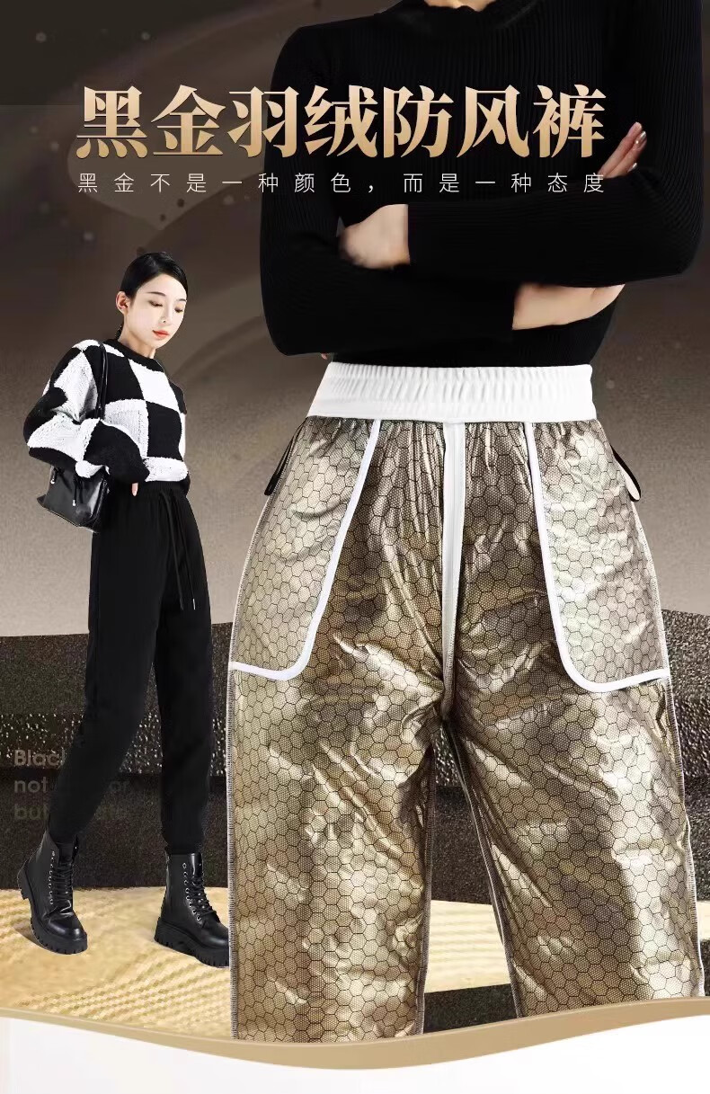 Flying in the Snow High-end Down Pants Women's Winter Outerwear 2025 New - 40 Degrees White Duck Down Windproof Warm Pants for Winter in the Northeast - 40 Degrees Cold Pants for Women - Black_Warm and Cold Resistant L