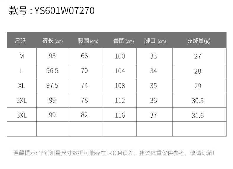 Outseam (cm) 99 cm 101.5 cm 104 cm 106.5 cm 109 cm