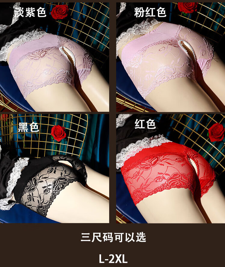 Universal adult men's and women's underwear, perverted and sexy women's crotchless lace briefs, no need to take off, transparent thong temptation, brown, L size, crotchless 90-110