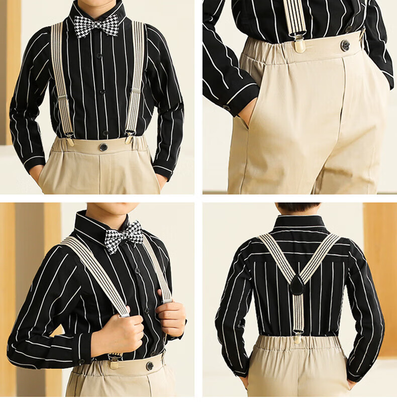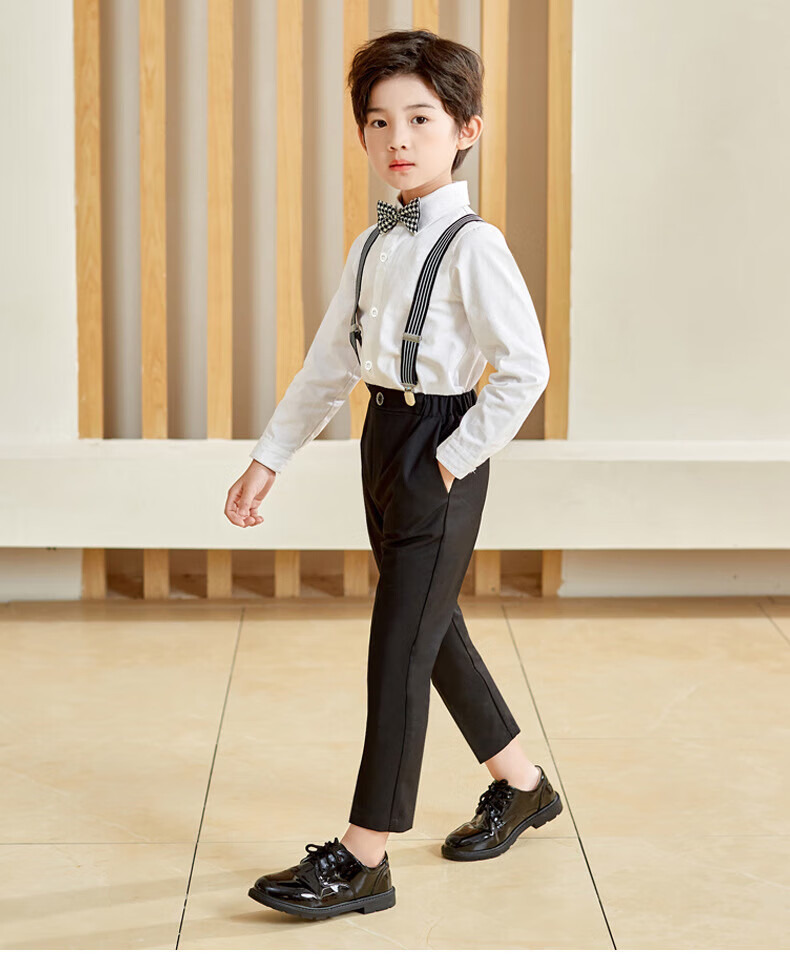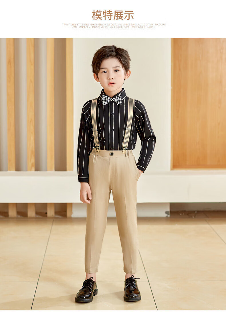 He Jiagong birthday children's suit suit little host flower girl boy British suit boy dress jacket piano white long sleeves black trousers striped suspenders bird plaid collar 110
