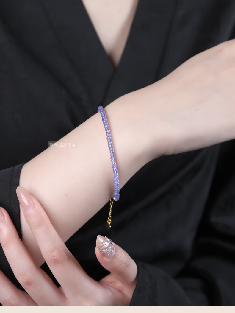 Tanzanite bracelet for women and men, crystal agate, emerald, blue gemstone, loose beads, faceted bead bracelet, shape-shaped plain circle, about 3mm