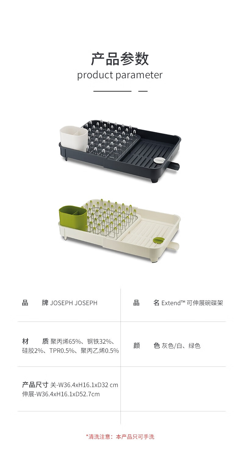 JOSEPH JOSEPH Extensible drain bowl rack sink kitchen storage rack drain bowl rack for tableware storage box dish rack gray 85040