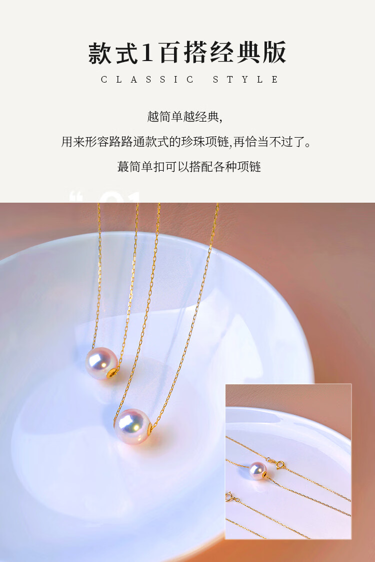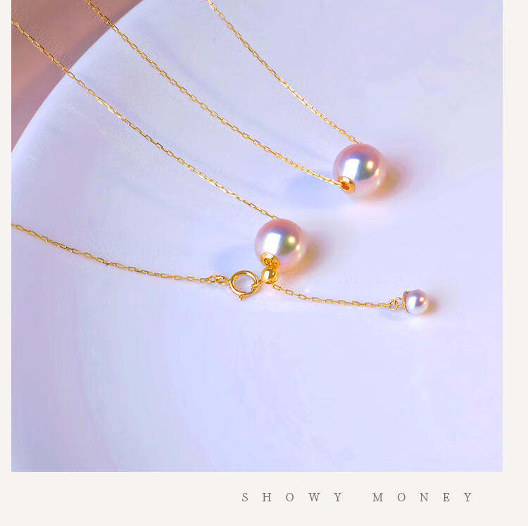Floating lotus round necklace seawater pearl pendant single clavicle chain a seawater pearl style 7-7 points 5mmx40cm