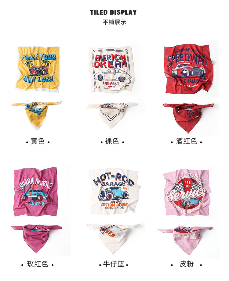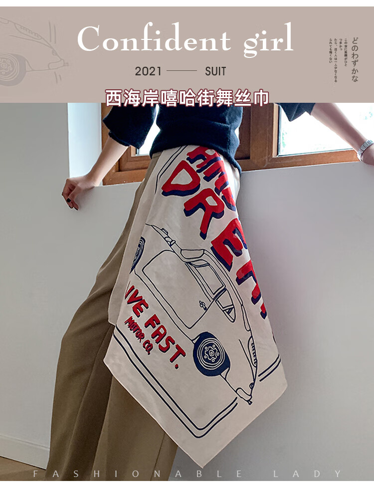 West Coast hip-hop street dance scarf small square scarf for women and men trendy brand American turban street headband retro Japanese scarf yellow