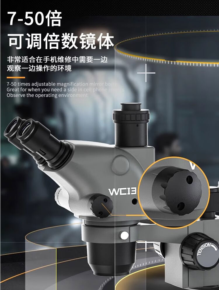 Shantou Lincun binocular and trinocular 6565x high-definition continuous zoom microscope mobile phone motherboard repair fingerprint fly 7-50x binocular column microscope + multi-functional base with swing arm