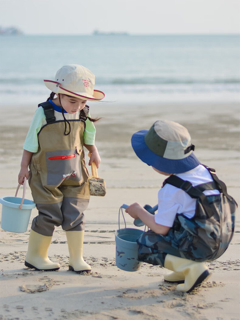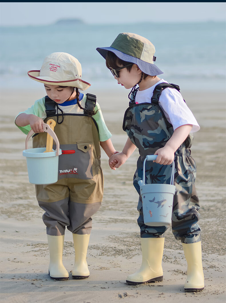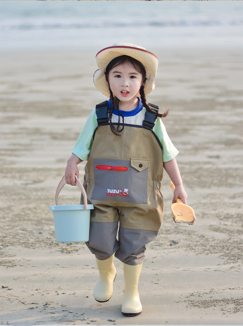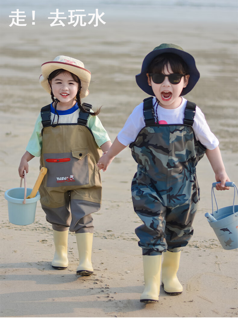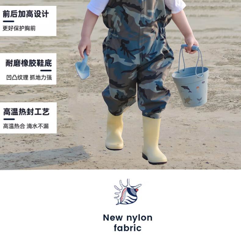 Catch the sea equipment children's water play clothes wading waterproof pants kindergarten beach fishing suspenders one-piece rain boots waders nylon water play clothes 10XL 10XL160 code inner length 16 cm