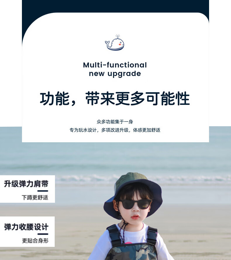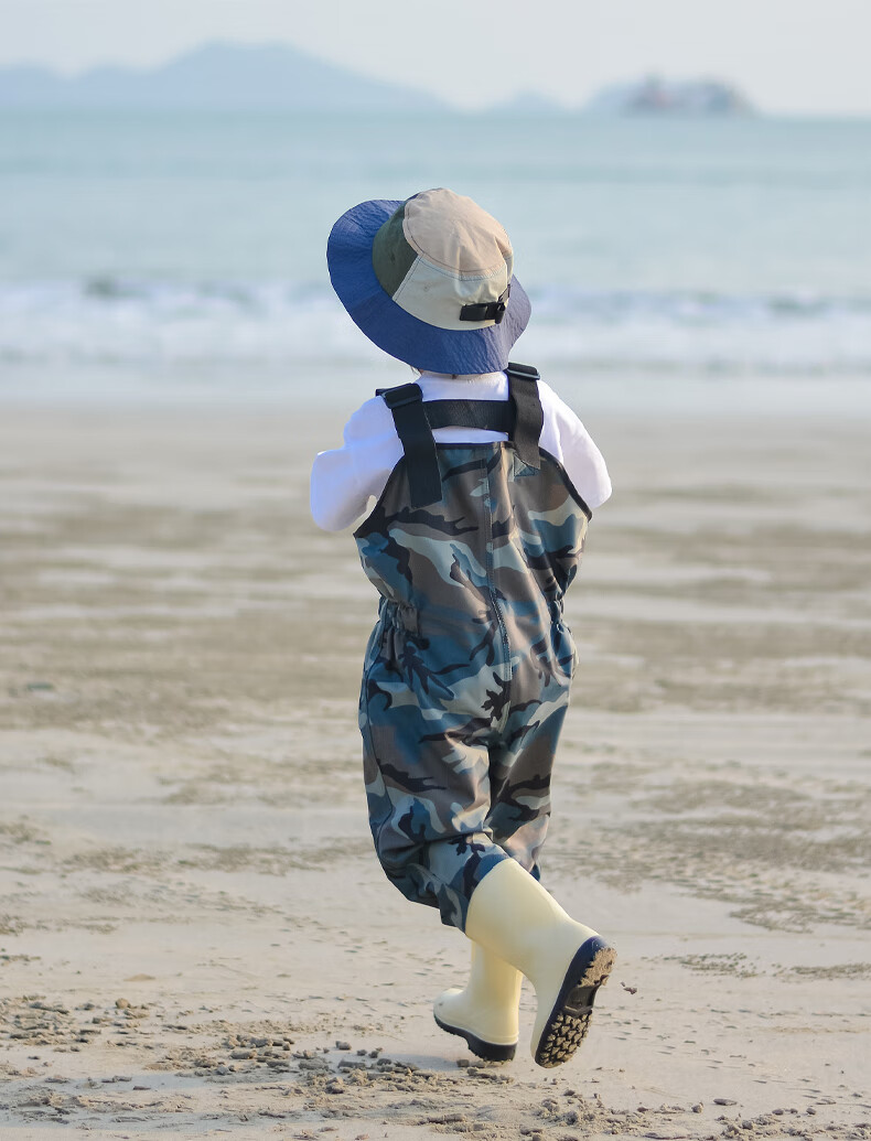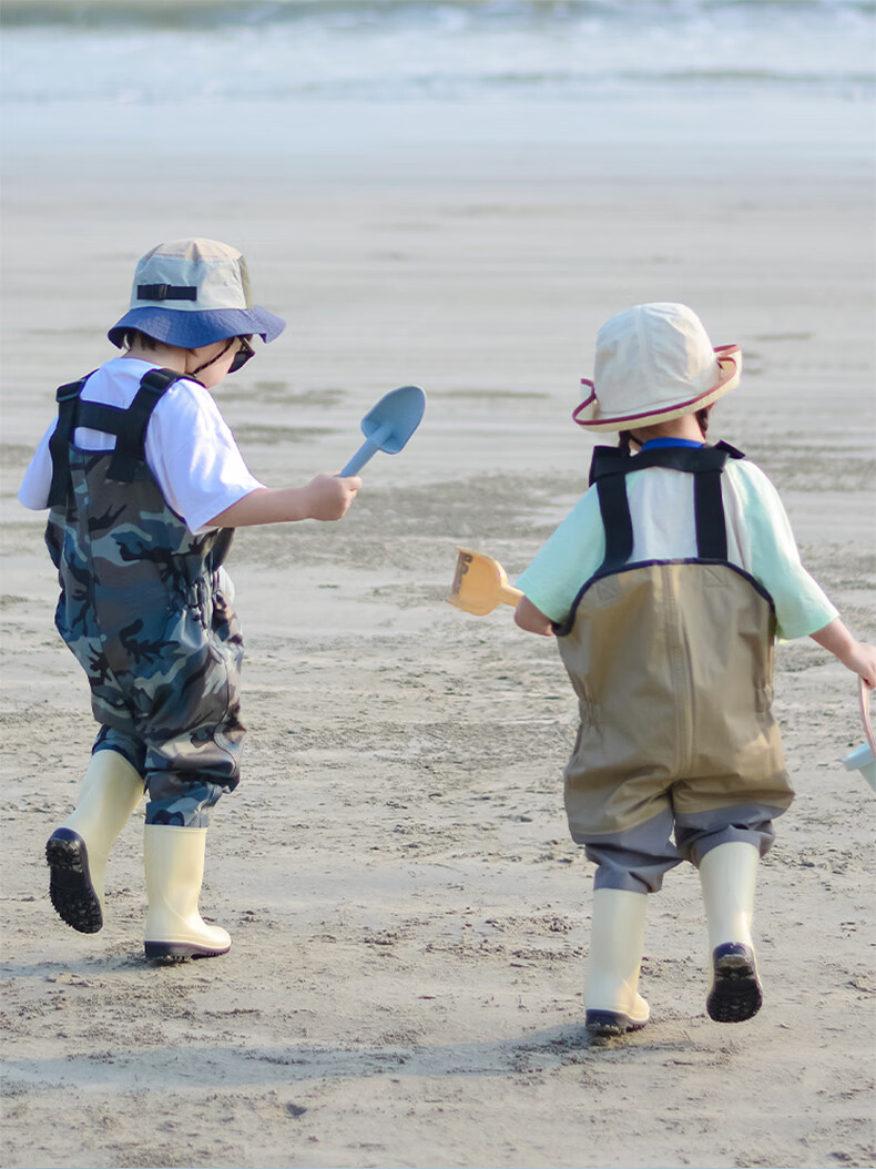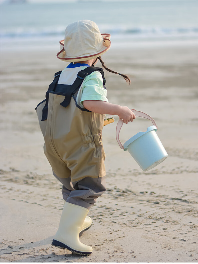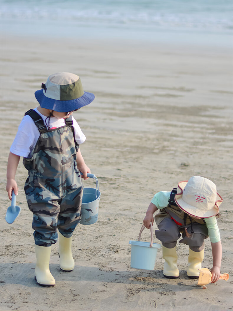 Catch the sea equipment children's water play clothes wading waterproof pants kindergarten beach fishing suspenders one-piece rain boots waders nylon water play clothes 10XL 10XL160 code inner length 16 cm