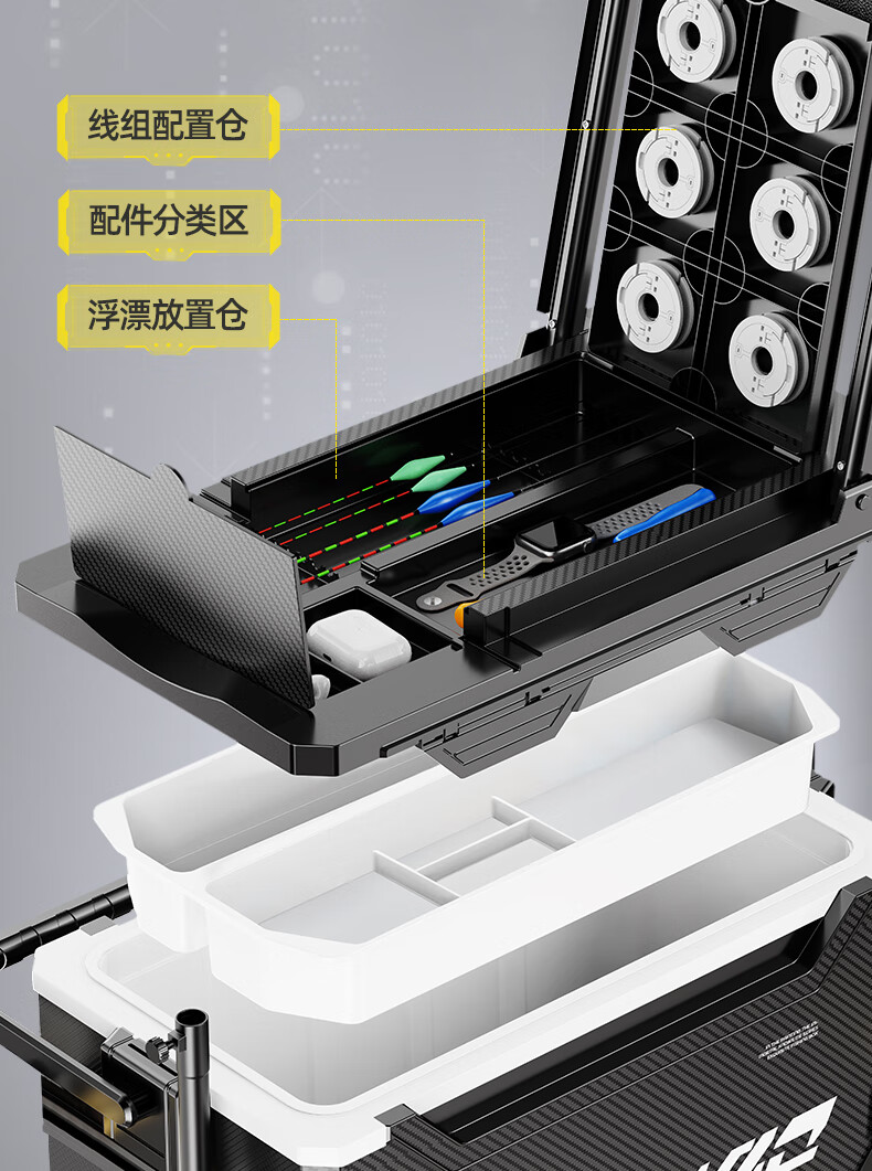 Zailu fishing box complete set of fishing box 2025 new Taiwan fishing box light multi-functional installation-free wheeled fishing box fishing gear equipment 1L 29L wheeled single turret corner basic model + small square box