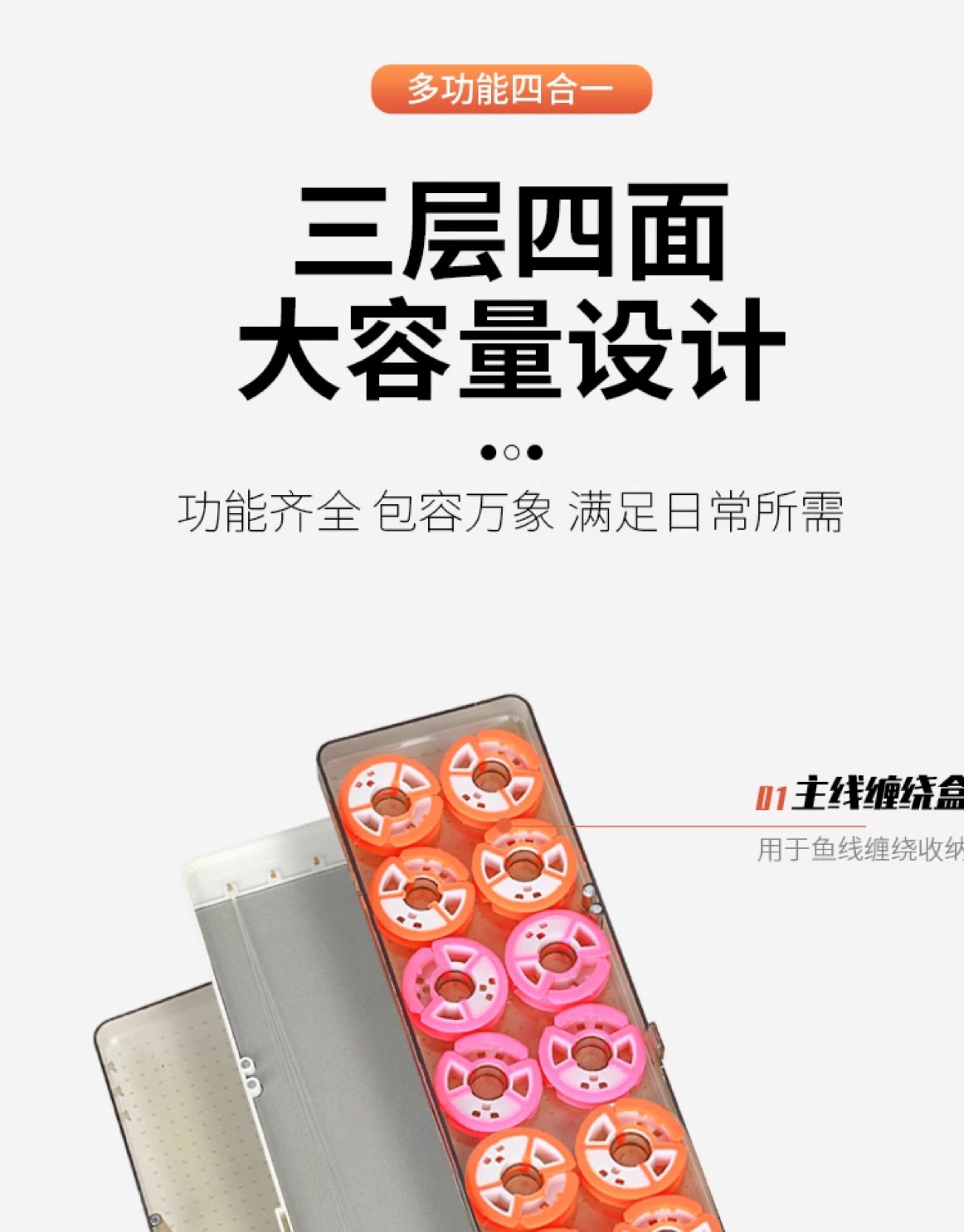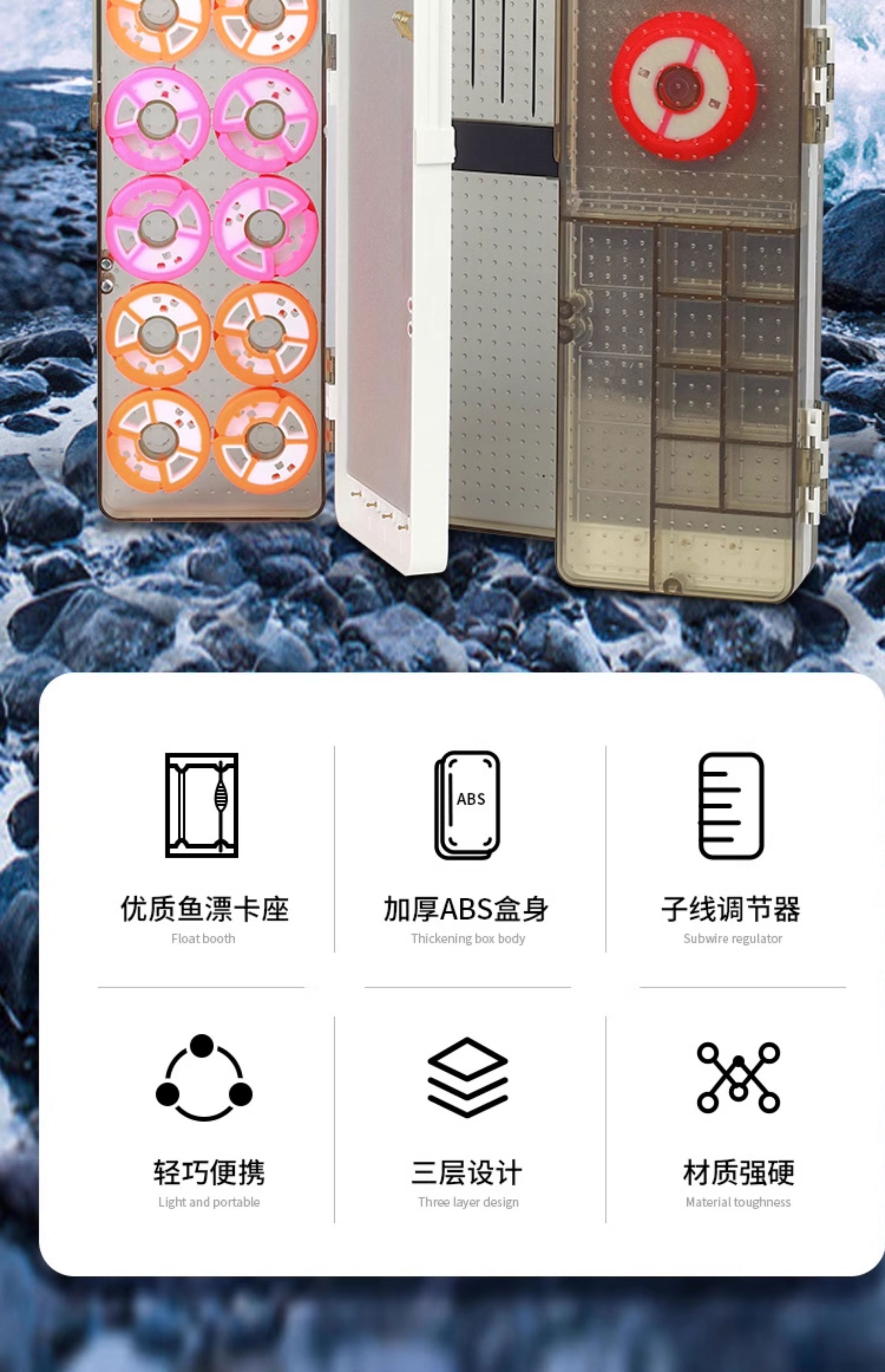 Fish float box three-layer multi-functional large-capacity main line sub-line box float box set three-in-one storage of fishing gear supplies 510 upgraded thickened red float box 14-axis coil