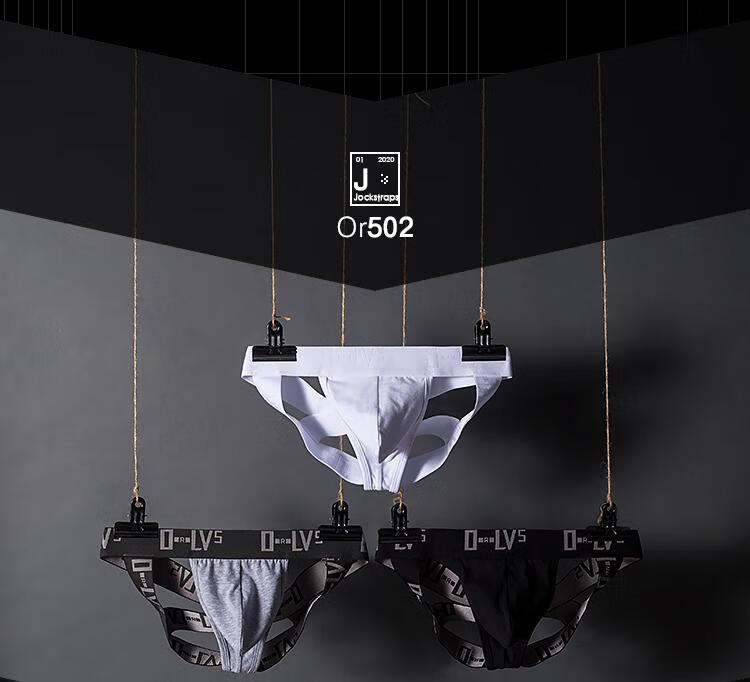 Pick up cat men's thong cross four-thin pants buttocks pure cotton personalized concave and convex low-waist fashion youth sexy double thong pants for men white OR502 L