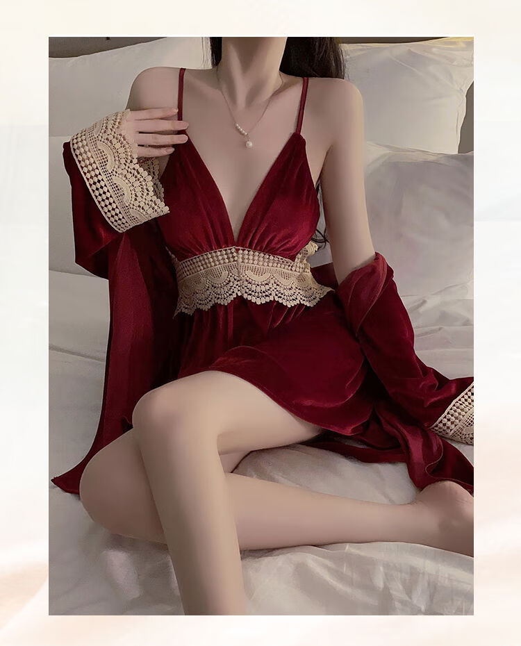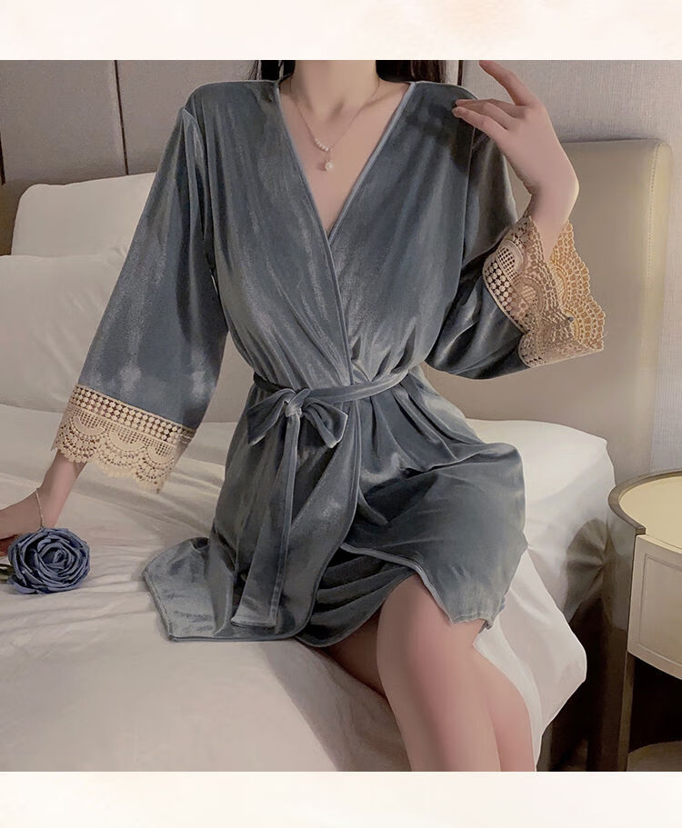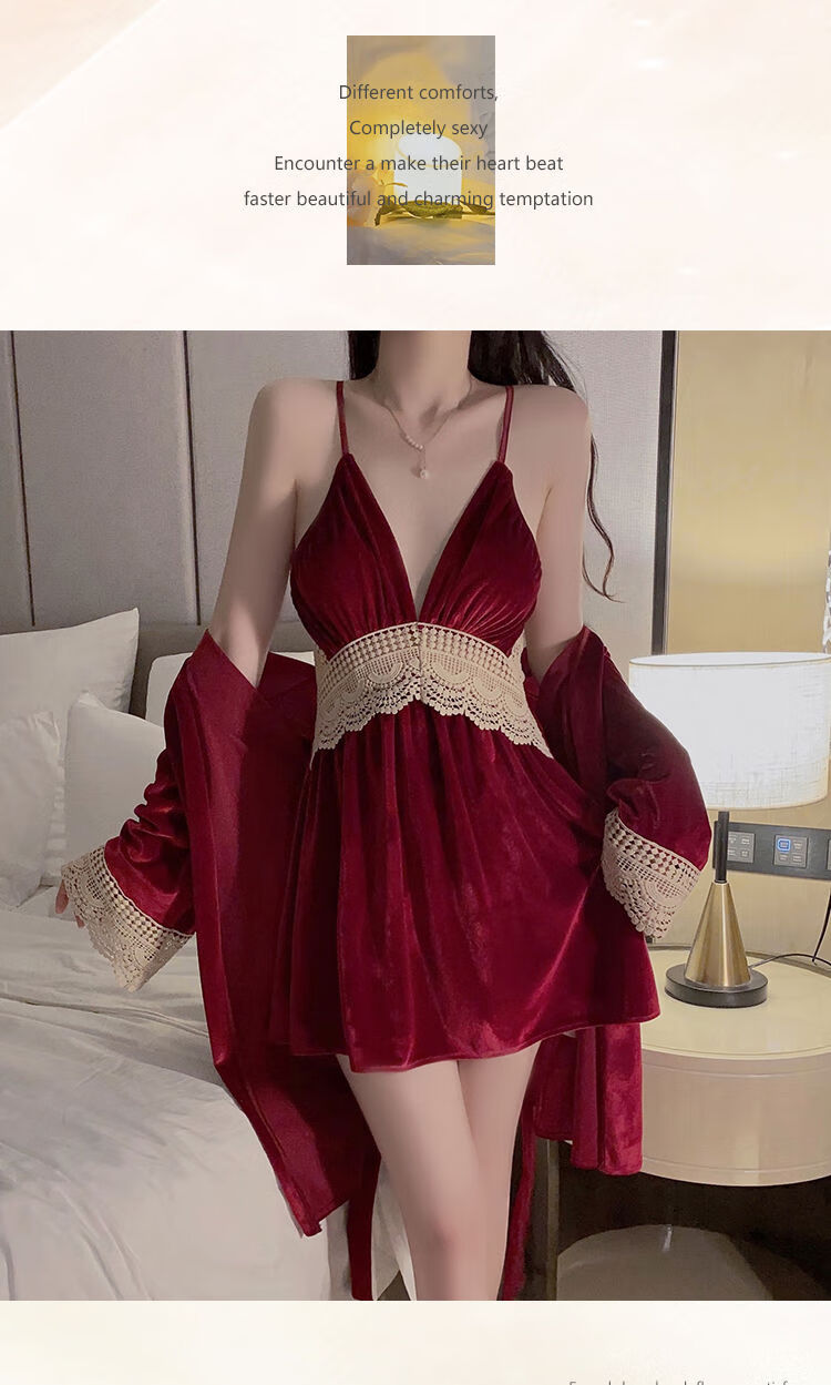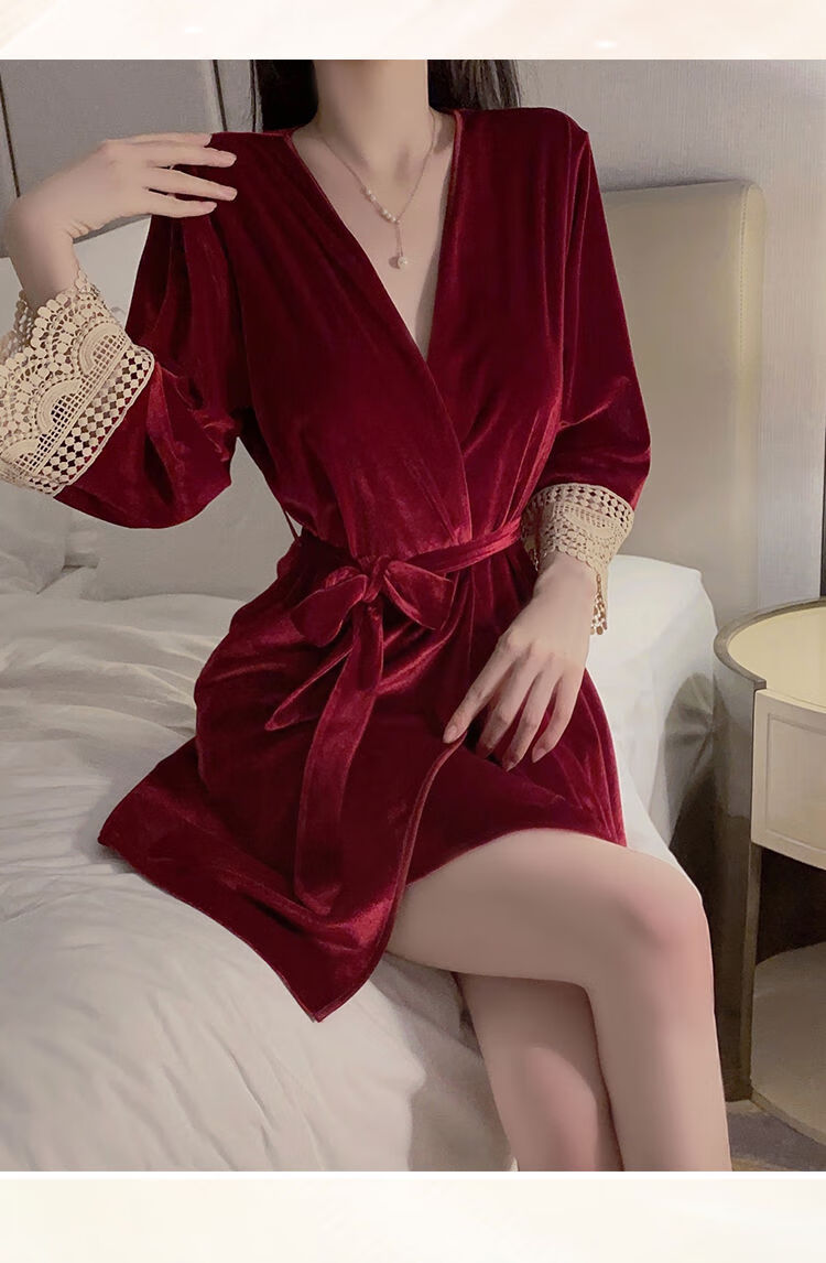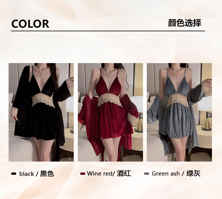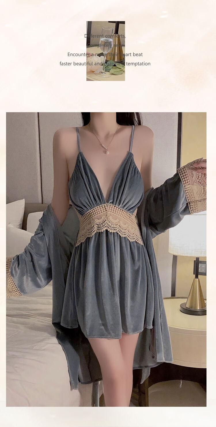 Sexy Pajamas for Women with Breast Pads Winter 2025 New Ice Silk Pure Desire Deep V Lace Backless Small Breast Suspender Nightgown A Black Velvet Model Confidential Shipping 160M80-105Jin Jin is equal to 0.5 kg