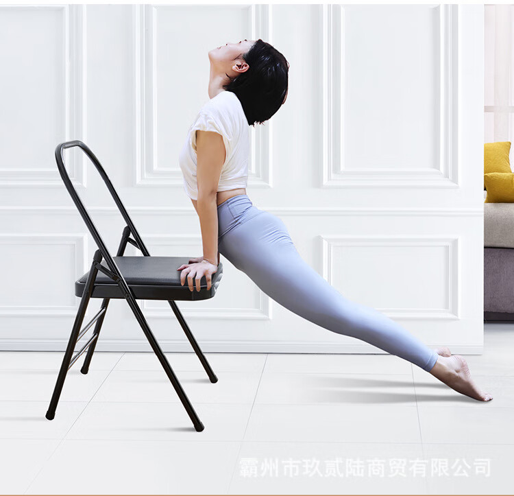 Milan Yoga Chair Yoga Supplies Iyengar Assistive Equipment Folding Black Pilates Chair PU Surface Special Folding Yoga Stool Three Beam Black Thickened 1 Point 2 Tube Wall Model