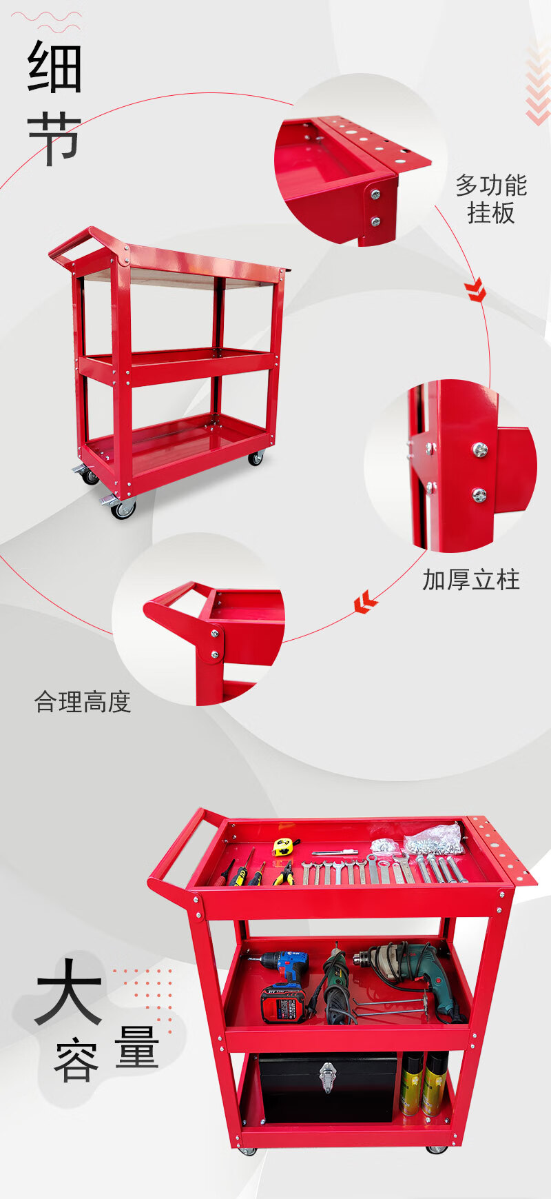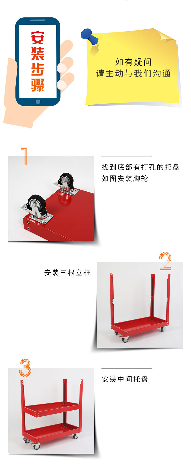Sailoto hole plate tool cart stainless steel cart factory auto repair workbench storage rack thickened trolley parts storage yellow three-layer tool cart