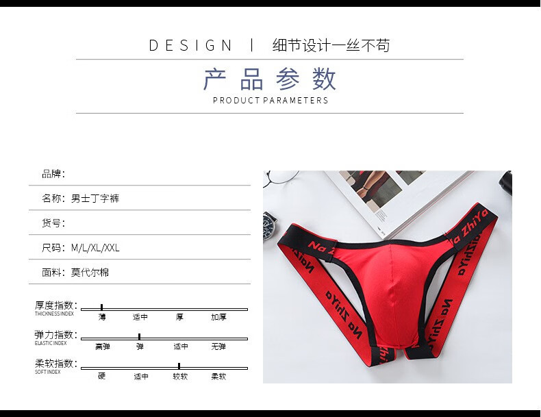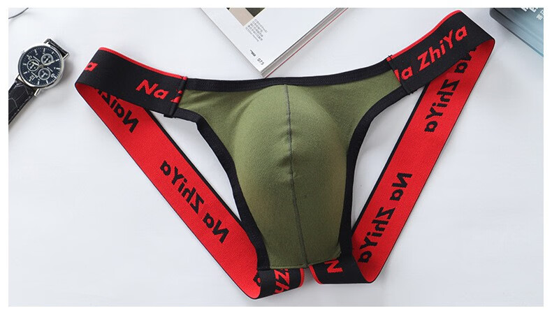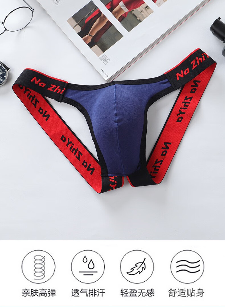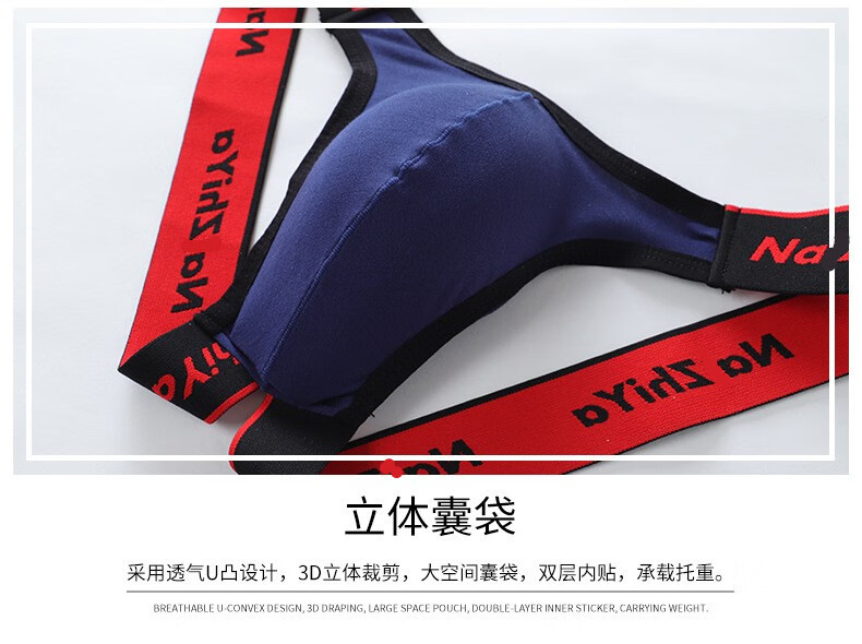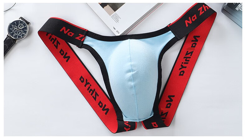 New men's thong oversized front bag cotton pants sexy thong sexy men's underwear wide elastic nightclub pants light gray M
