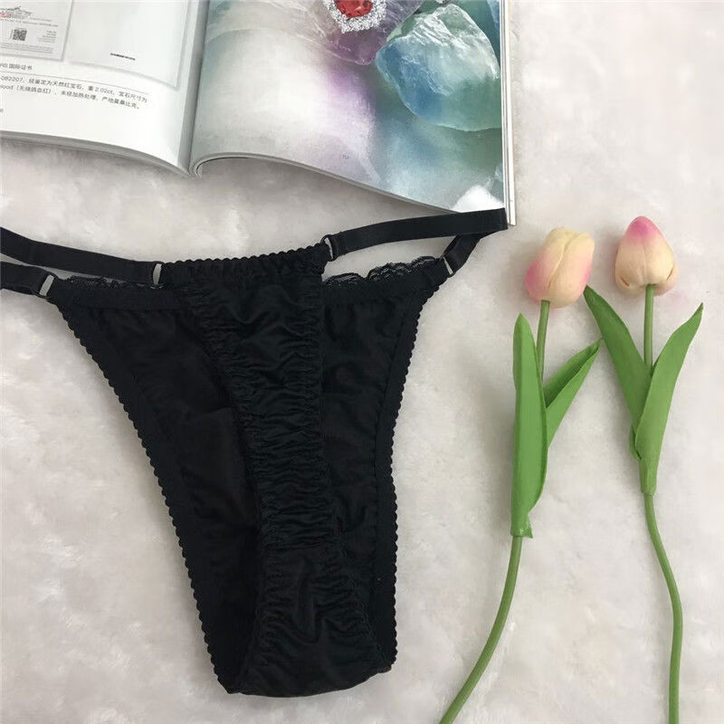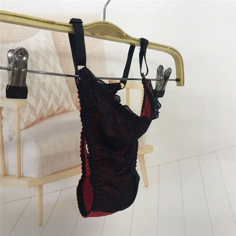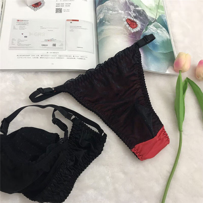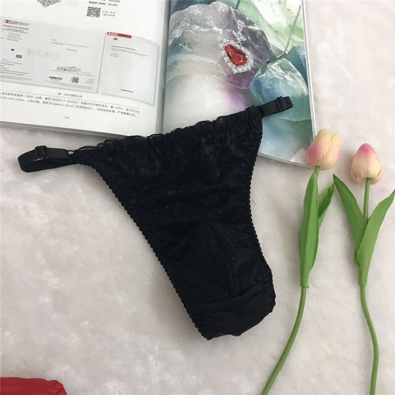 New men's adjustable thin strap suspender thong sexy men's close-fitting lace underwear black L recommended 95-110Jin Jin equals 0.5 kg