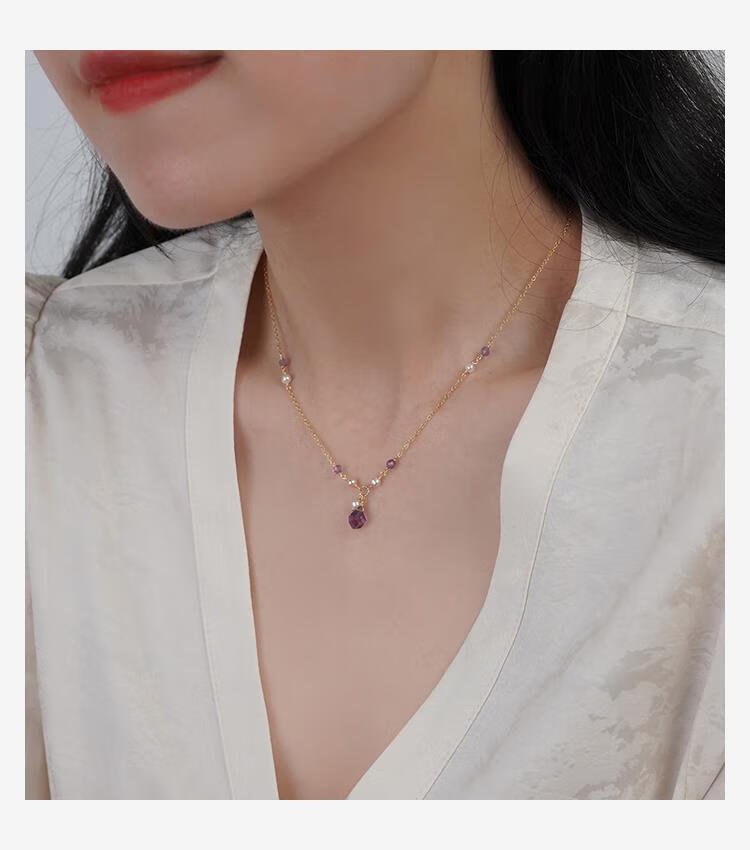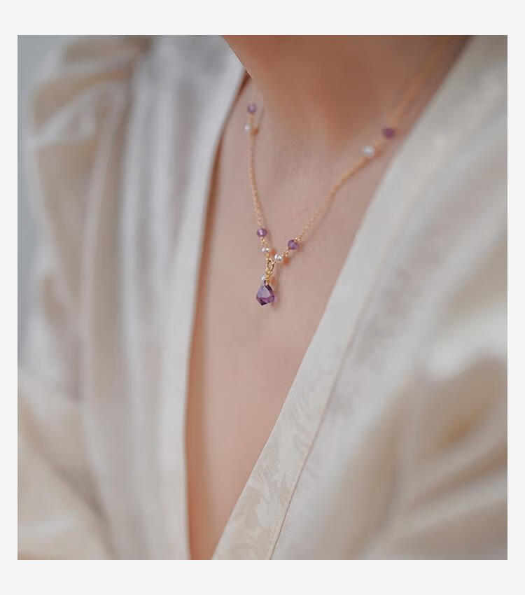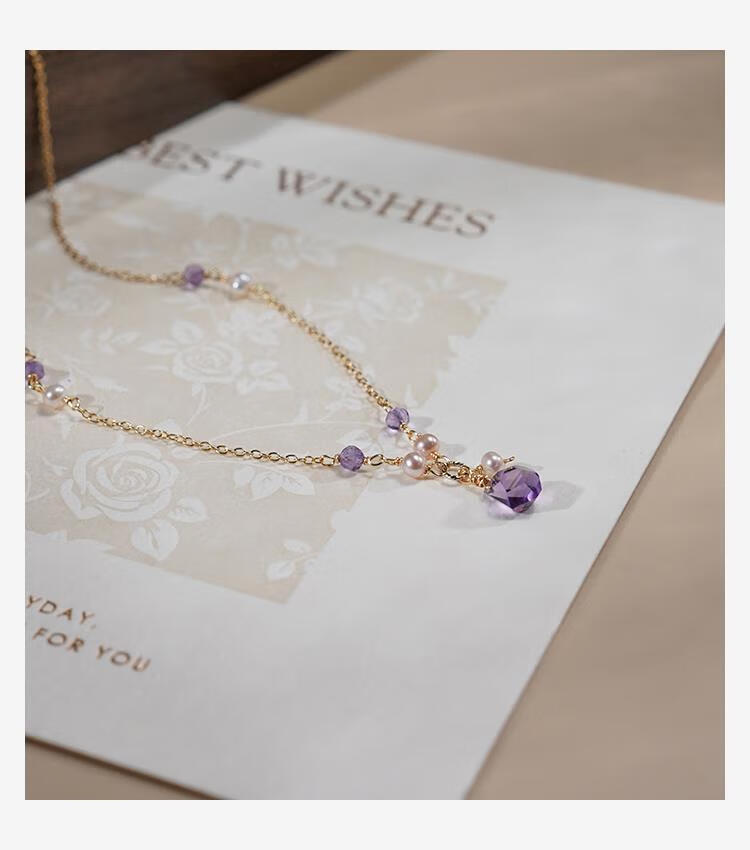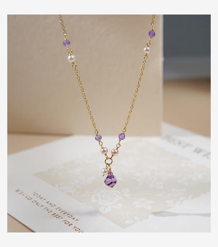 Niche design amethyst pearl necklace with access to luxury high-end clavicle chain sterling silver water drop 40540 amethyst tanzanite necklace (14k gold filled)