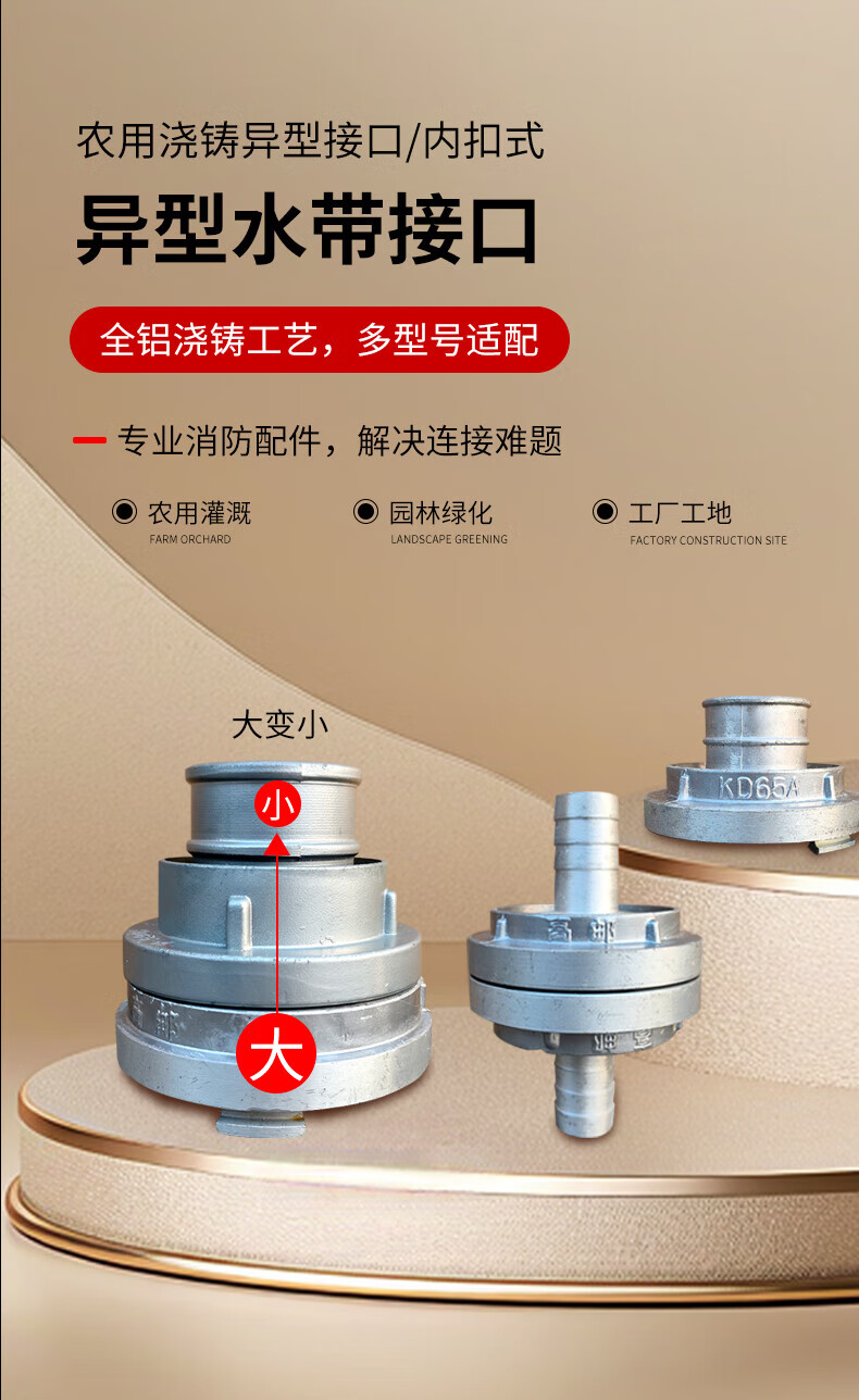 Jingxi Selection Special-shaped hose interface internal buckle type agricultural fire hydrant fire hydrant all-aluminum casting reducing joint large to small conversion interface can be connected to water pipe hose fire protection agricultural greening 50/25 (50 internal buckle to 25 hose interface) 1 payment
