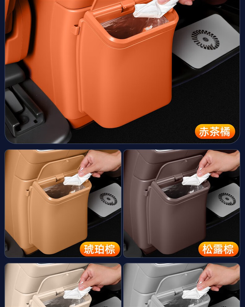 Dianbin is suitable for 26 models of Wenjie M7M8M9 refrigerator trash can anti-kick mat car interior supplies accessories practical car modification new M7/M8 snap-on refrigerator trash can truffle brown-free garbage bag