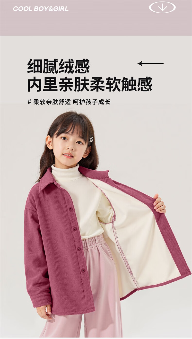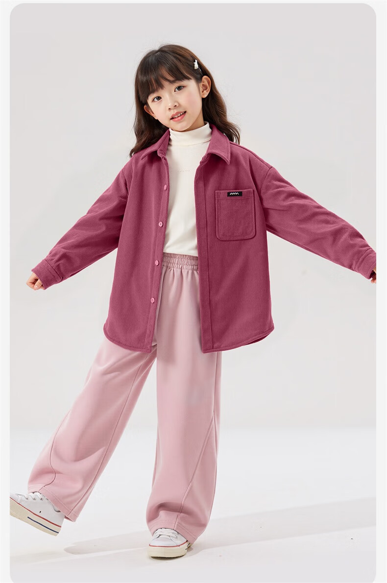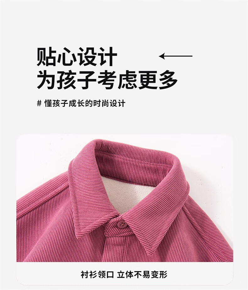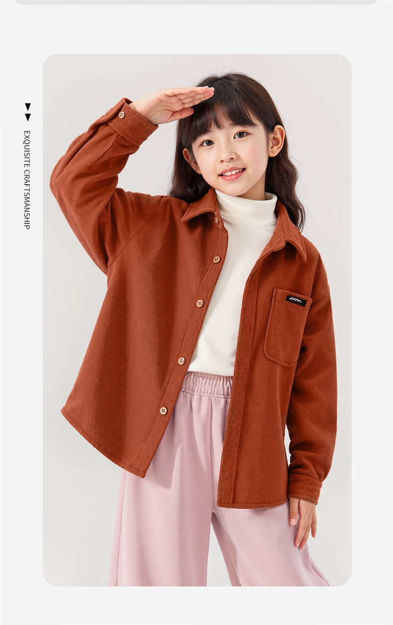Babu Doukale Girls' Autumn and Winter Velvet Shirt 2025 New Children's Corduroy Shirt Warm Middle and Large Children's Winter Clothes H Square Velcro Babu K Rose Red 130