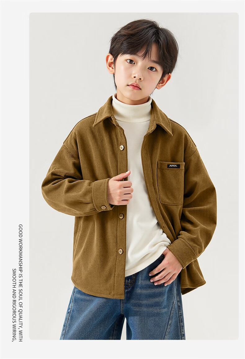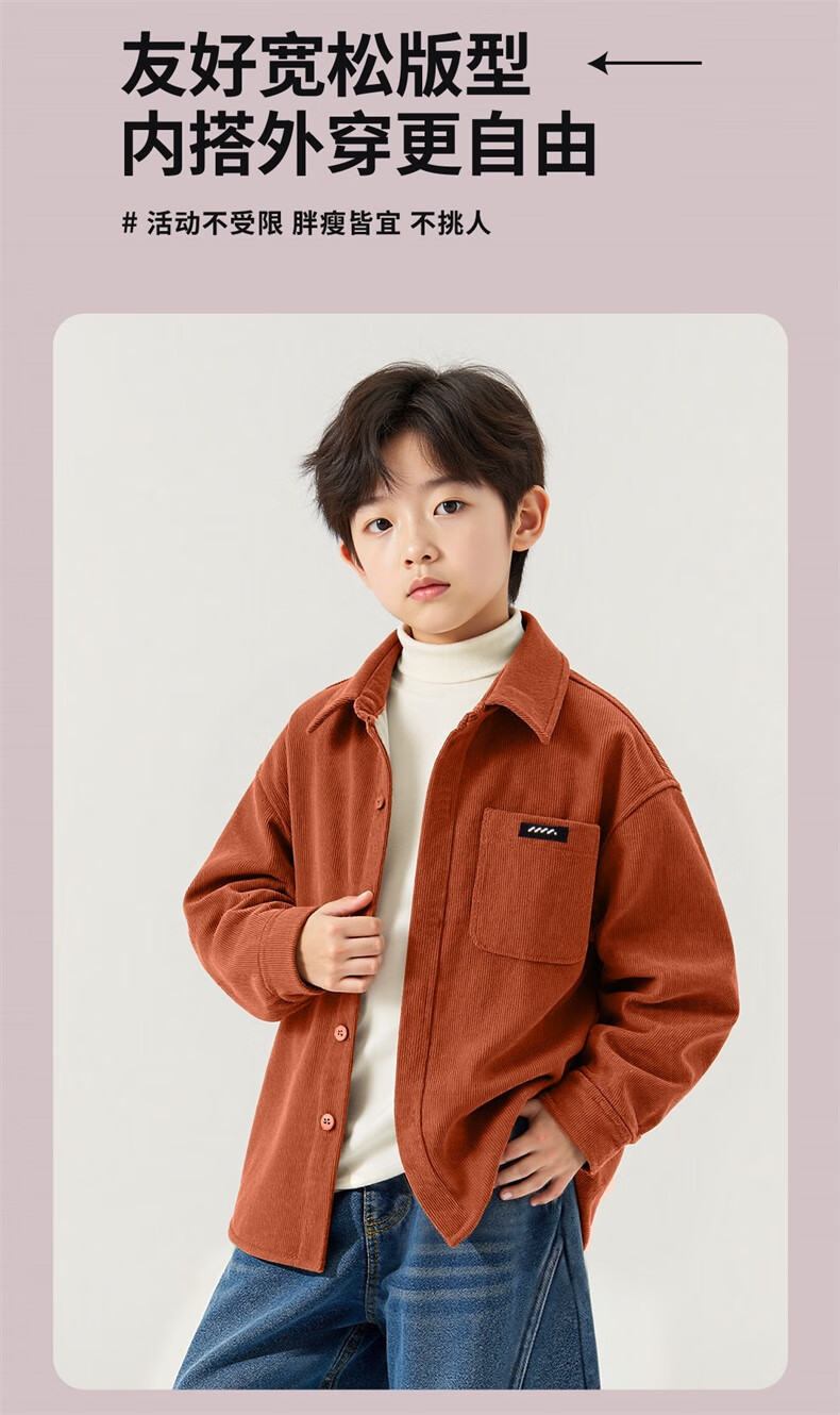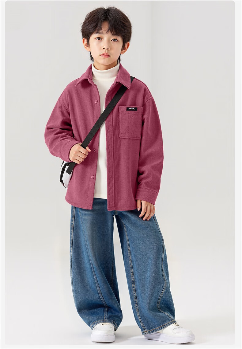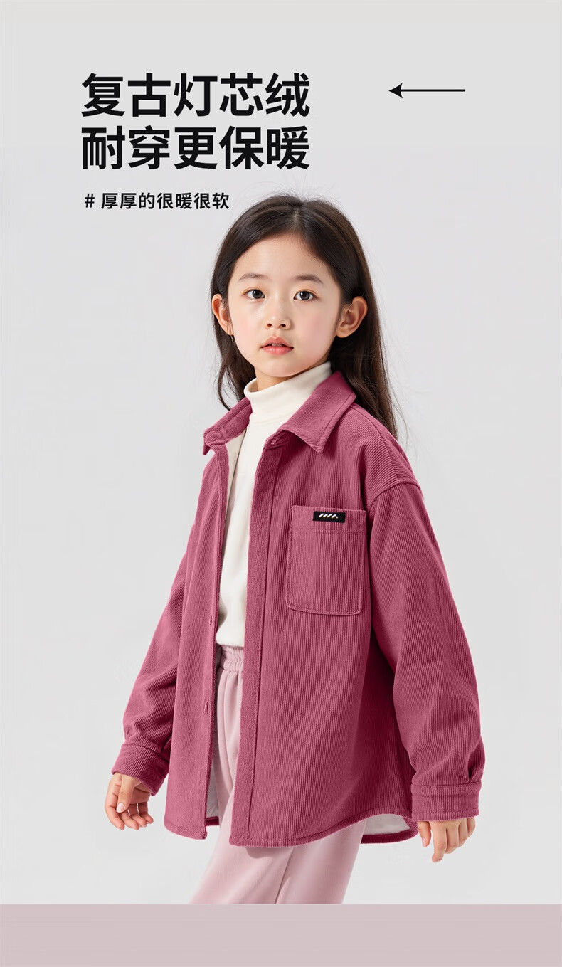 Babu Doukale Girls' Autumn and Winter Velvet Shirt 2025 New Children's Corduroy Shirt Warm Middle and Large Children's Winter Clothes H Square Velcro Babu K Rose Red 130