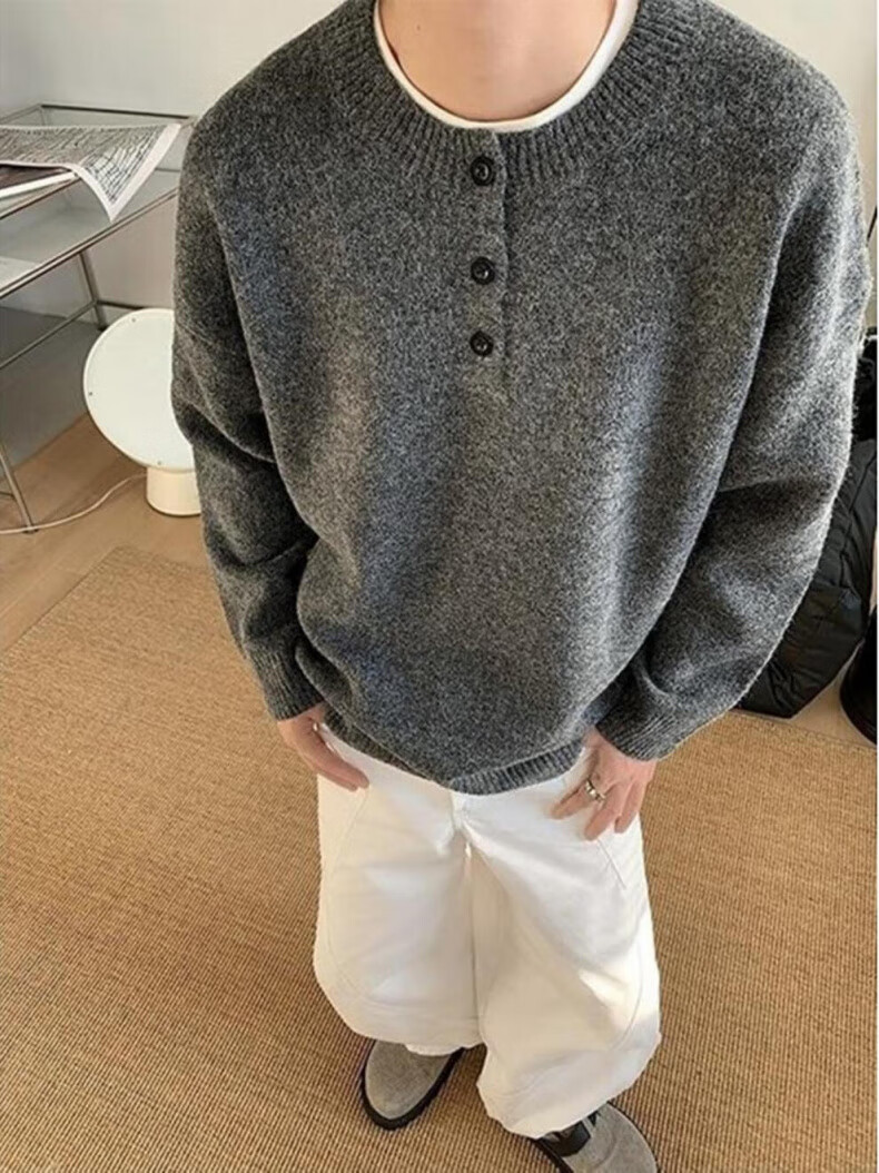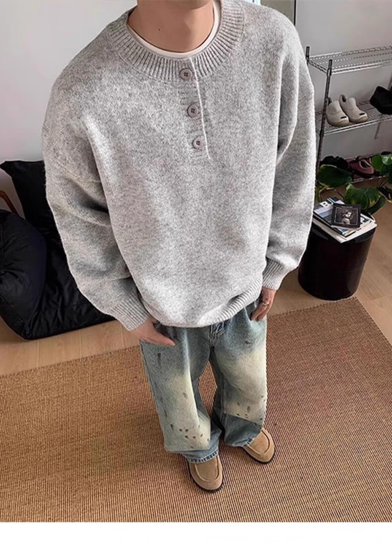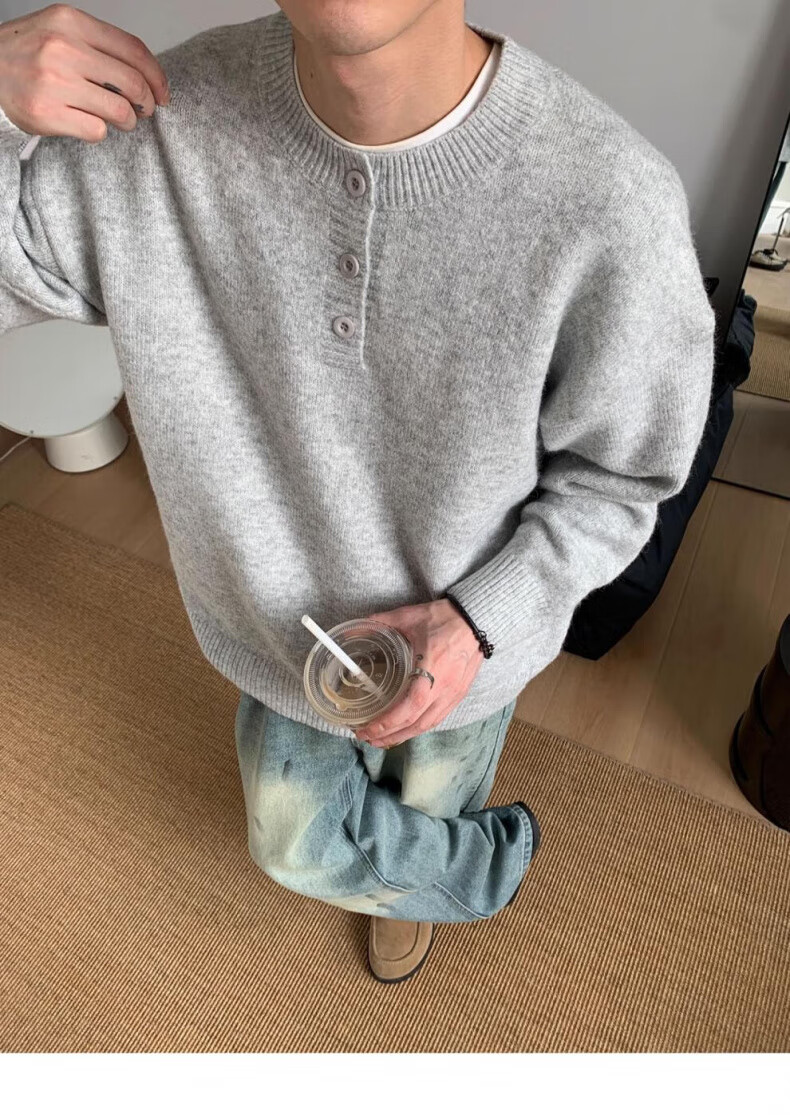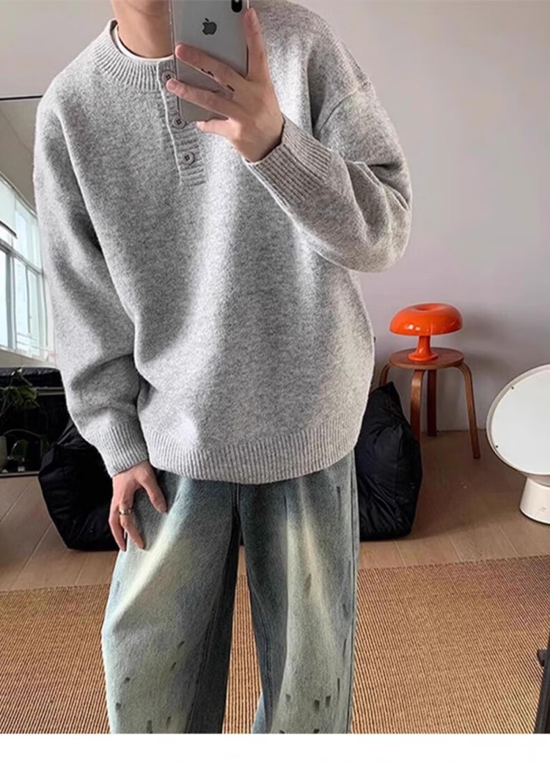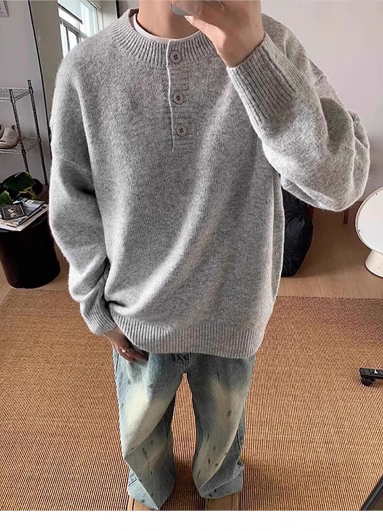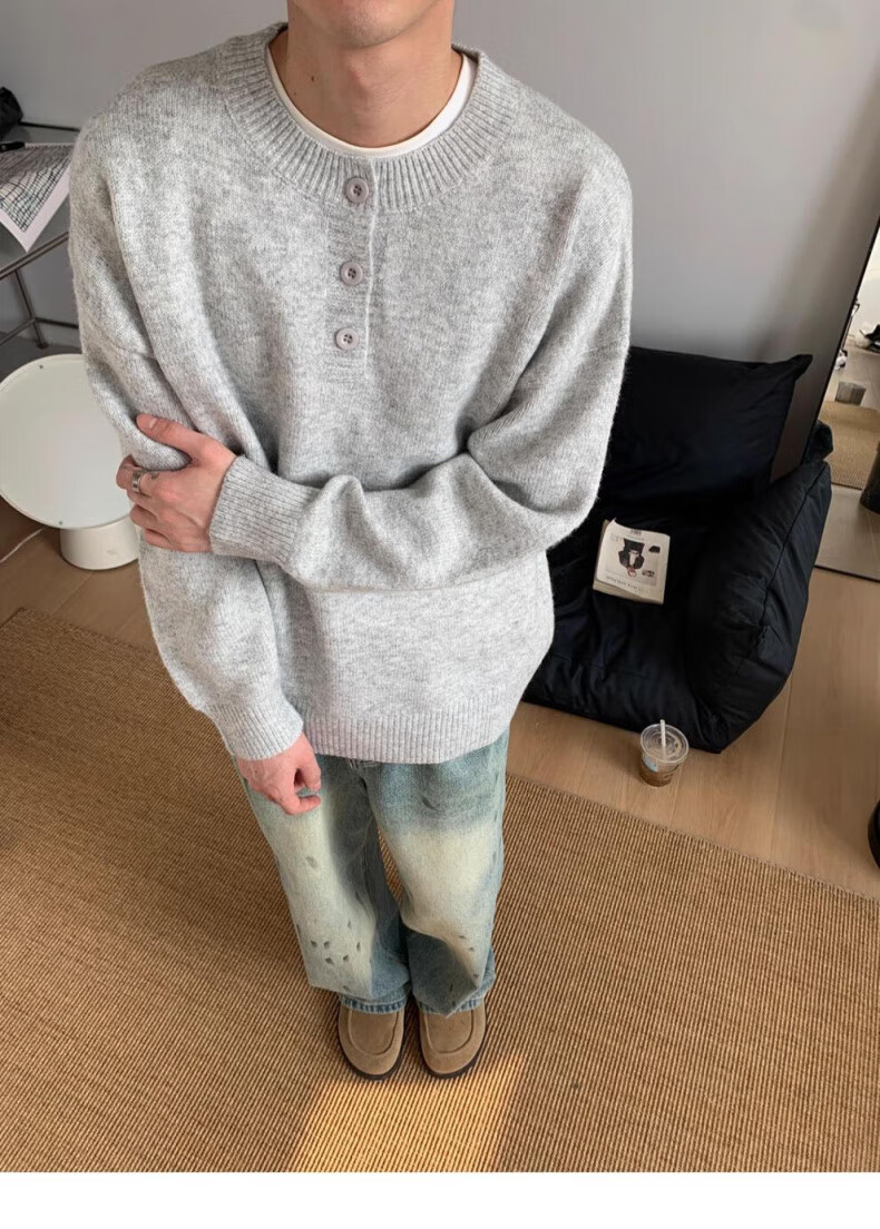 Woodpecker American Henry Collar Sweater Men's Autumn and Winter New High-end Lazy Style Knitted Sweater with Bottoming Shirt for Men Light Gray 3XL (Recommended 145-160 Jin Jin equals 0.5 kg)