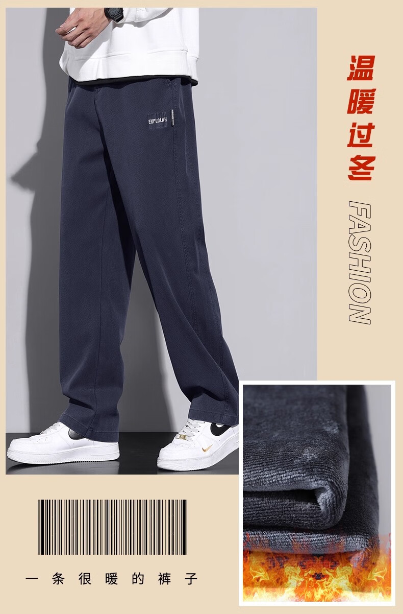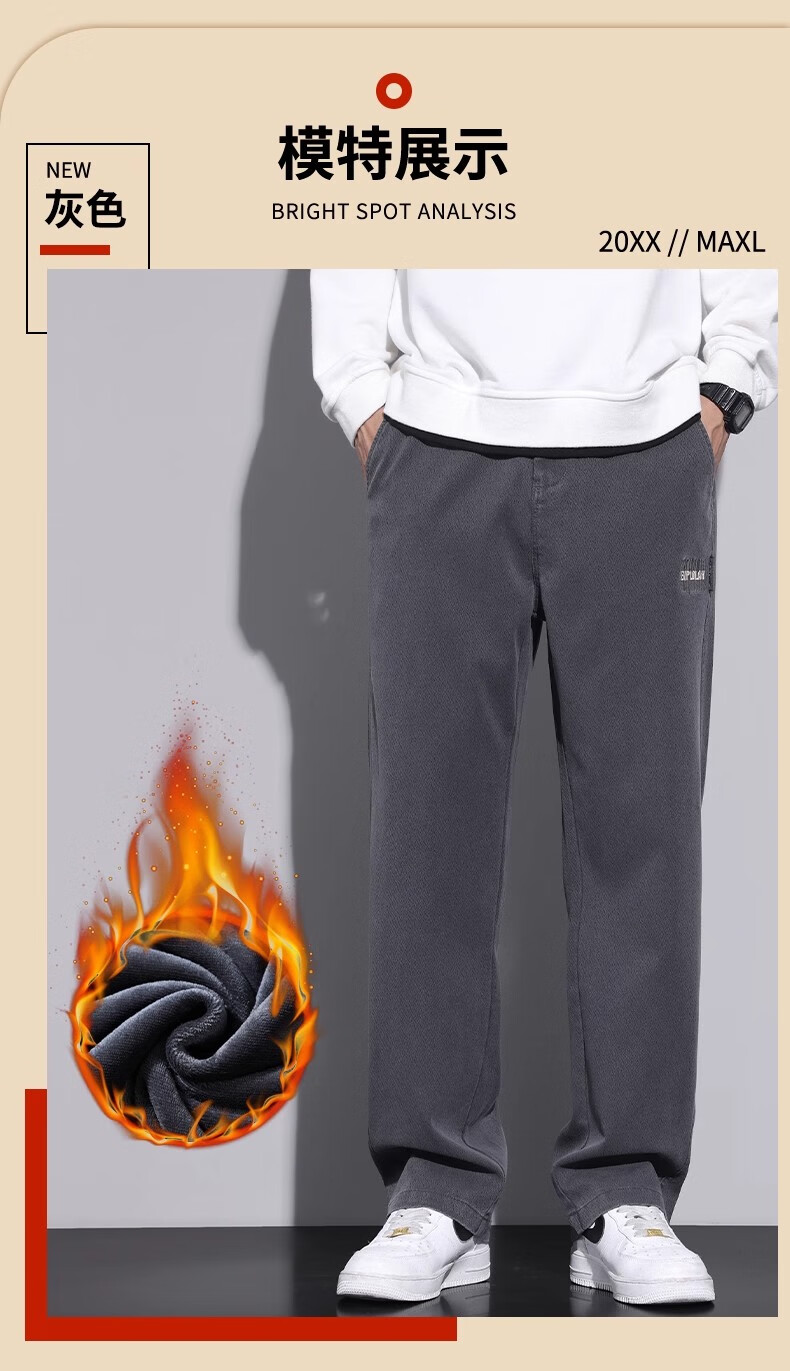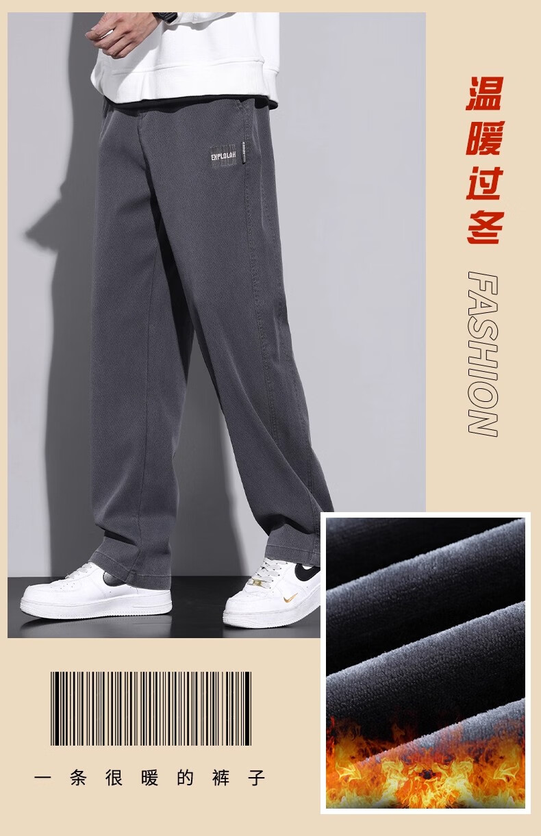 ROMON 2025 New Men's Velvet Casual Pants Loose Straight Sports Pants Men's Autumn and Winter Versatile American Pants Trend 833 Gray Velvet XL Recommended 135-155 Jin Jin equals 0.5 kg