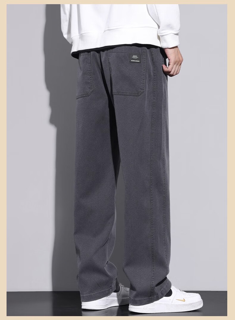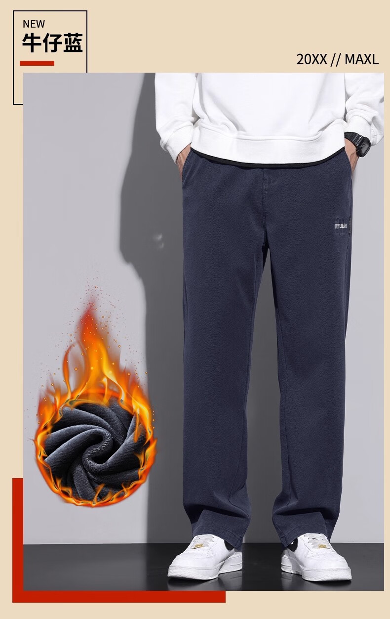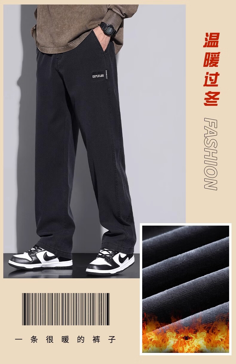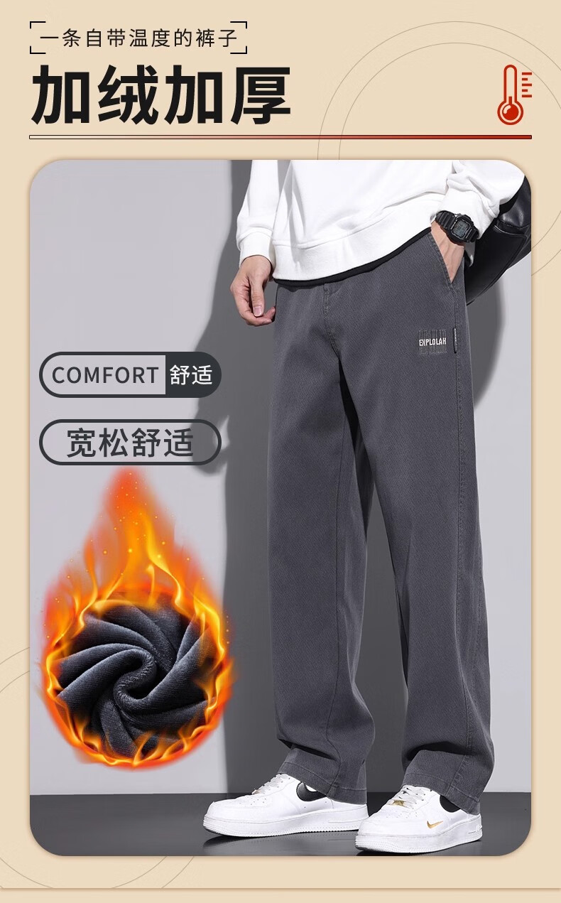 ROMON 2025 New Men's Velvet Casual Pants Loose Straight Sports Pants Men's Autumn and Winter Versatile American Pants Trend 833 Gray Velvet XL Recommended 135-155 Jin Jin equals 0.5 kg