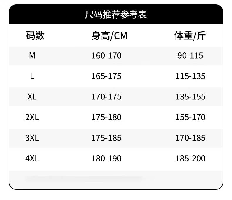 China (cm) 165 / 88-90 170 / 96-98 175 / 108-110 180 / 118-122 185 / 126-130