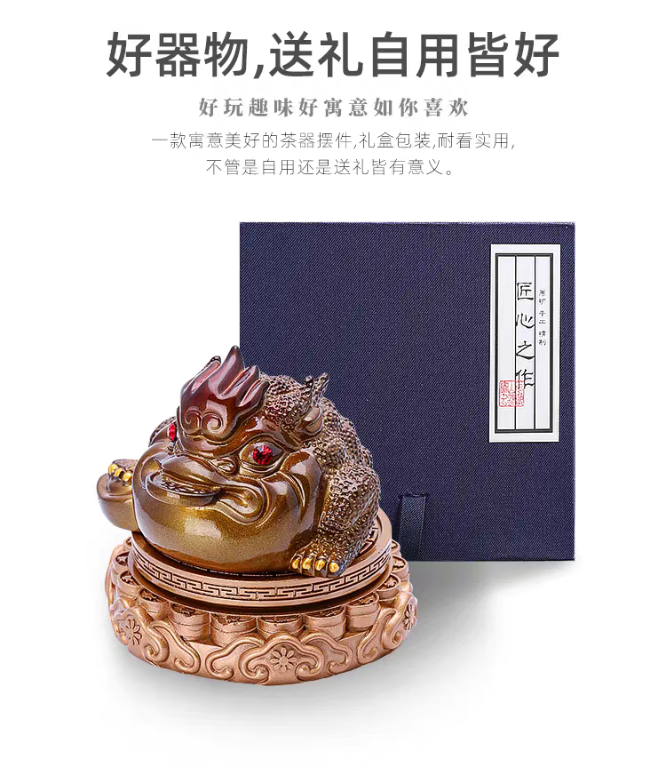 Baotong and Rotating Lucky Golden Toad Tea Pets Can Raise Color-Changing Tea Table Decoration Ornaments Fine Tea Sets Tea Trays Tea Play Zen Toad Gold Rotating Lucky Color-Changing Golden Toad (Gift Box)