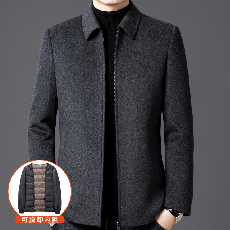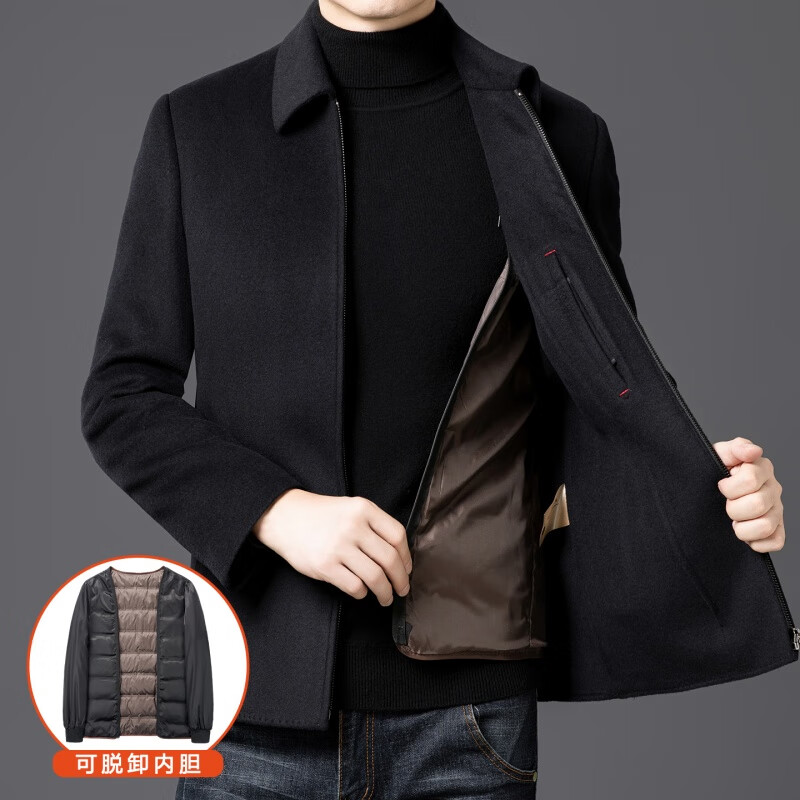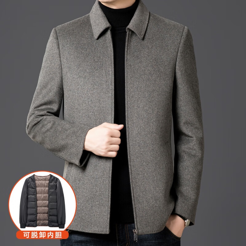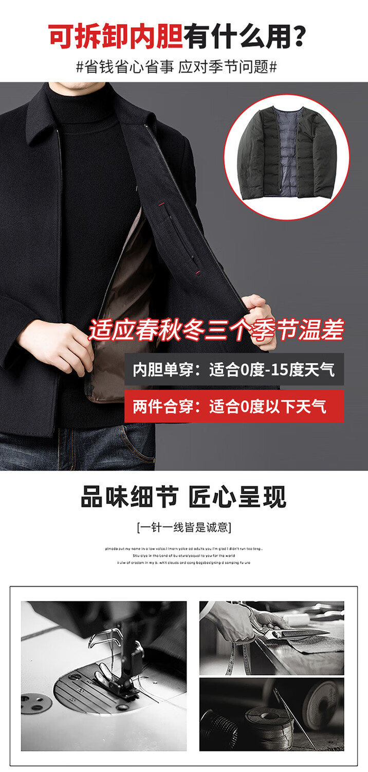 Qipai shop counter same style double-sided woolen three-in-one removable liner wool jacket mid-length woolen coat khaki M 100-125Jin Jin equals 0.5 kg