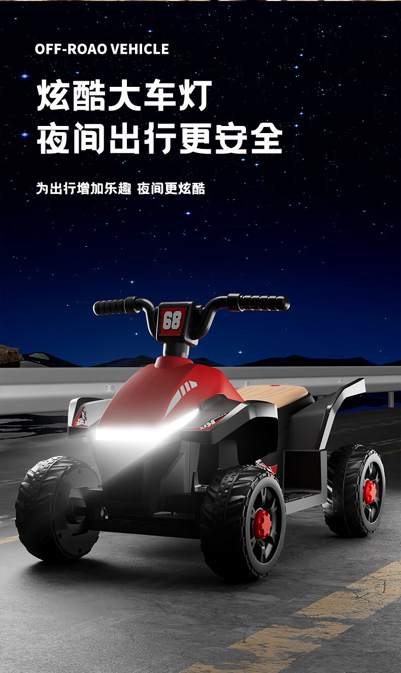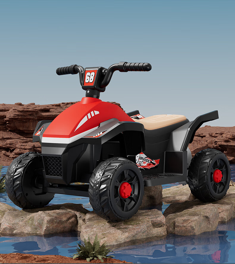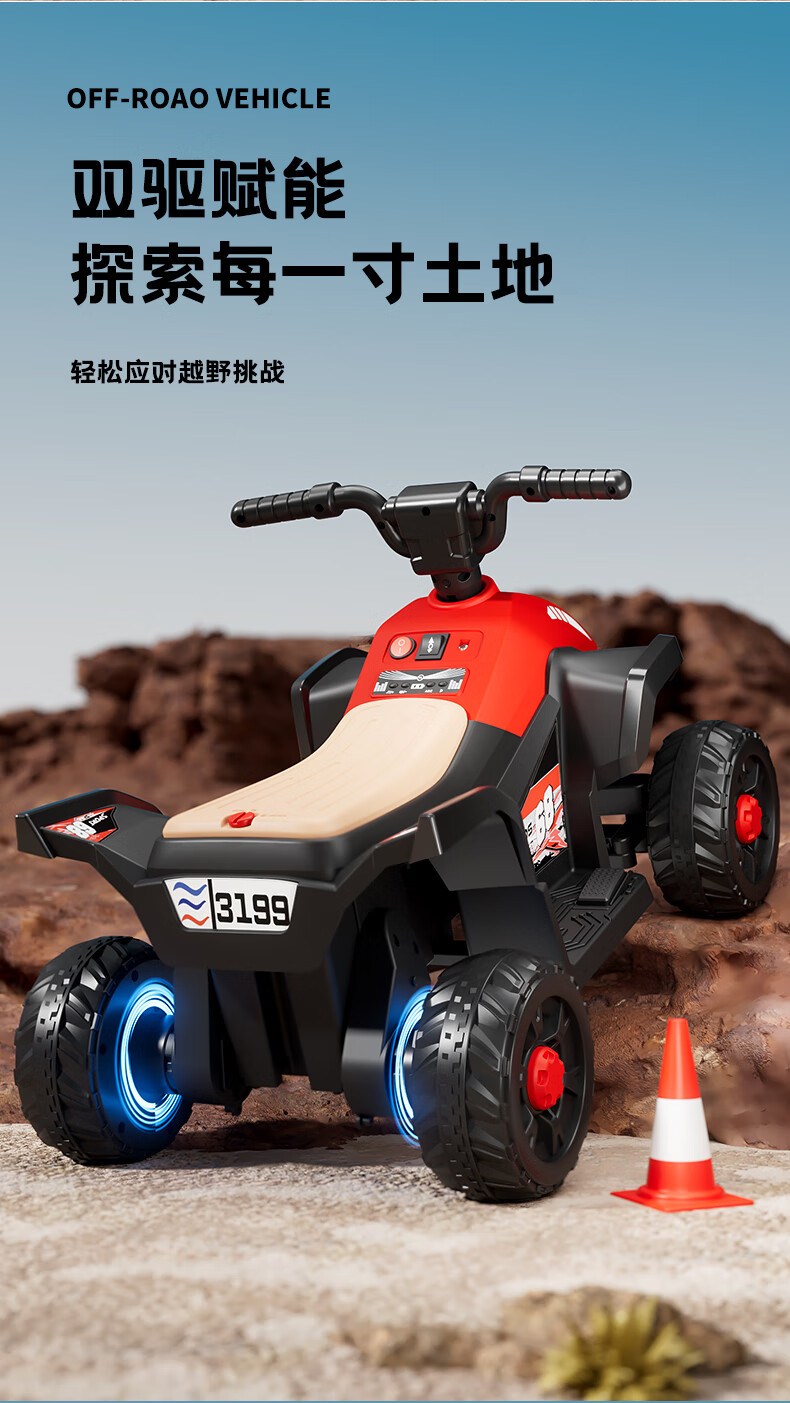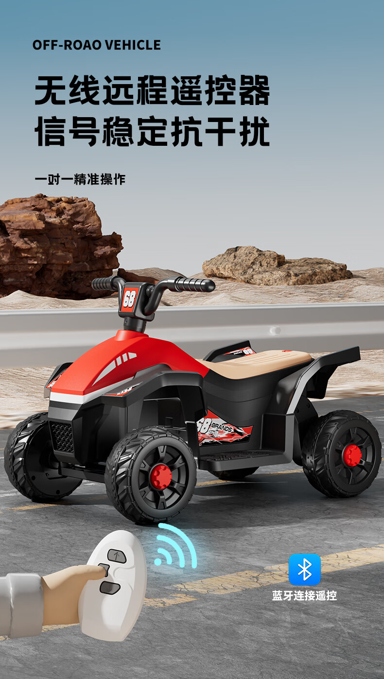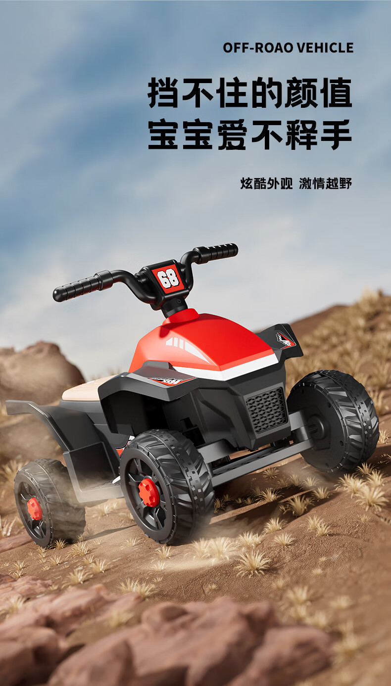 Children's electric car for men and women, charging baby remote control four-wheel off-road vehicle that can sit on children's toy car, ATV car, red dual-drive 6V7 + early education music + lighting + wear-resistant tires + large rear bucket