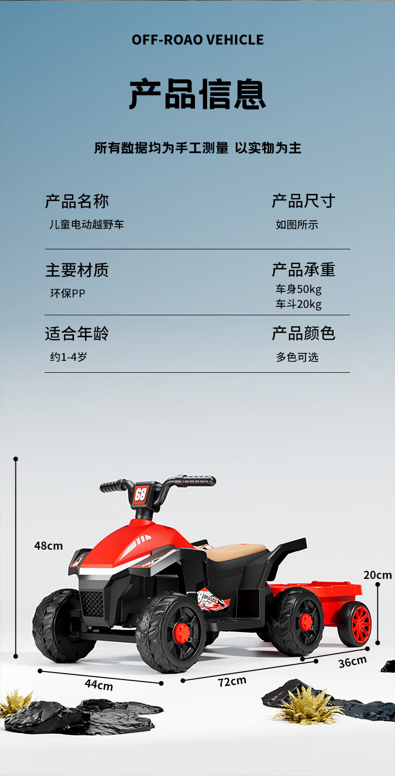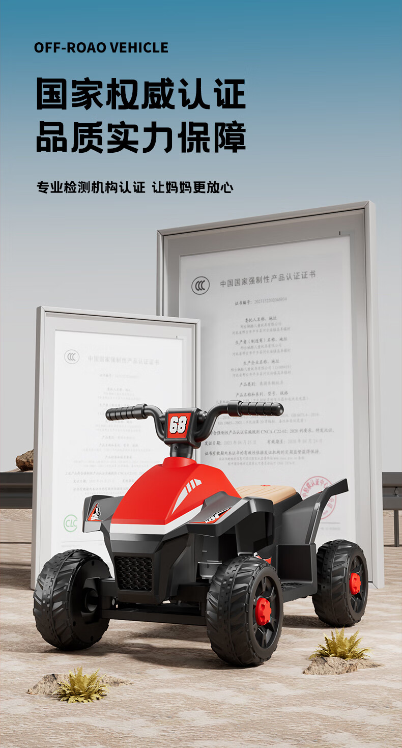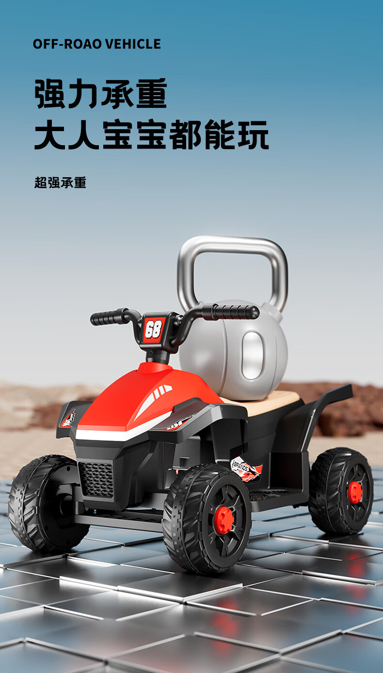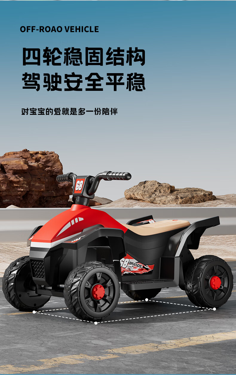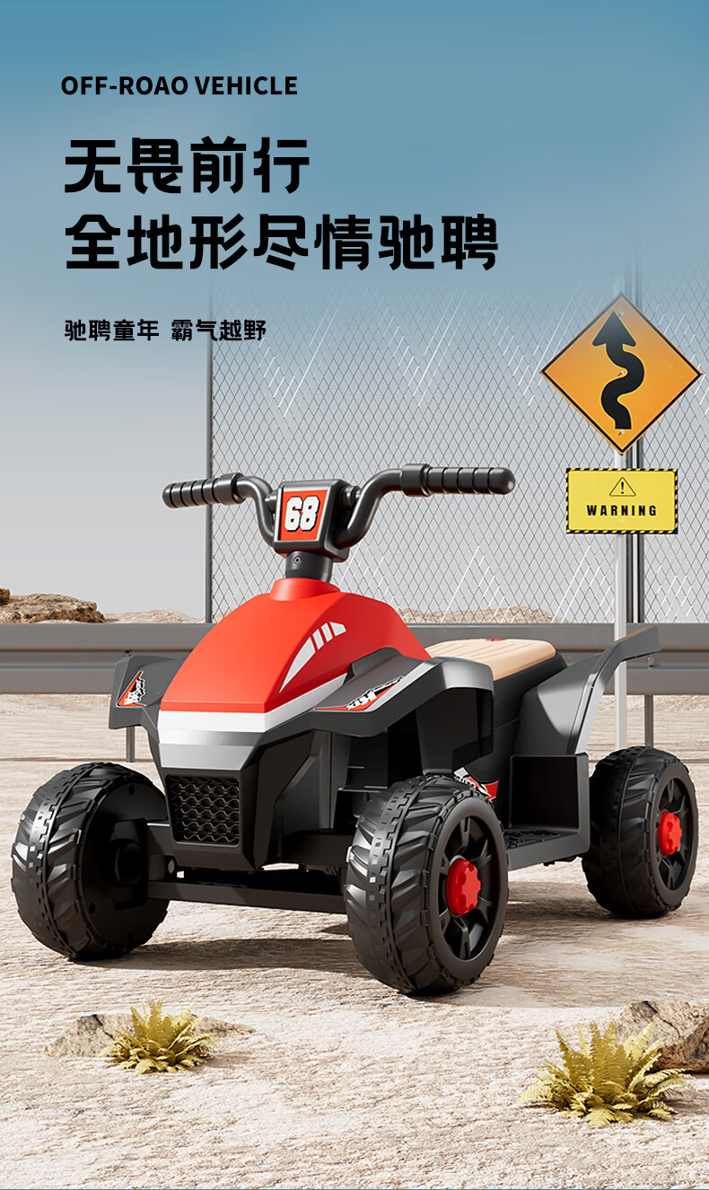 Children's electric car for men and women, charging baby remote control four-wheel off-road vehicle that can sit on children's toy car, ATV car, red dual-drive 6V7 + early education music + lighting + wear-resistant tires + large rear bucket