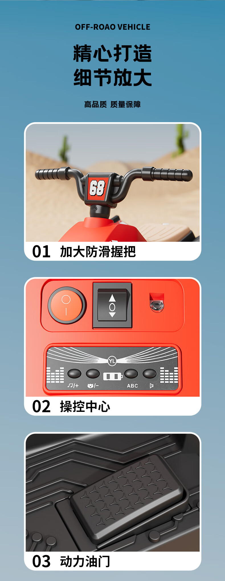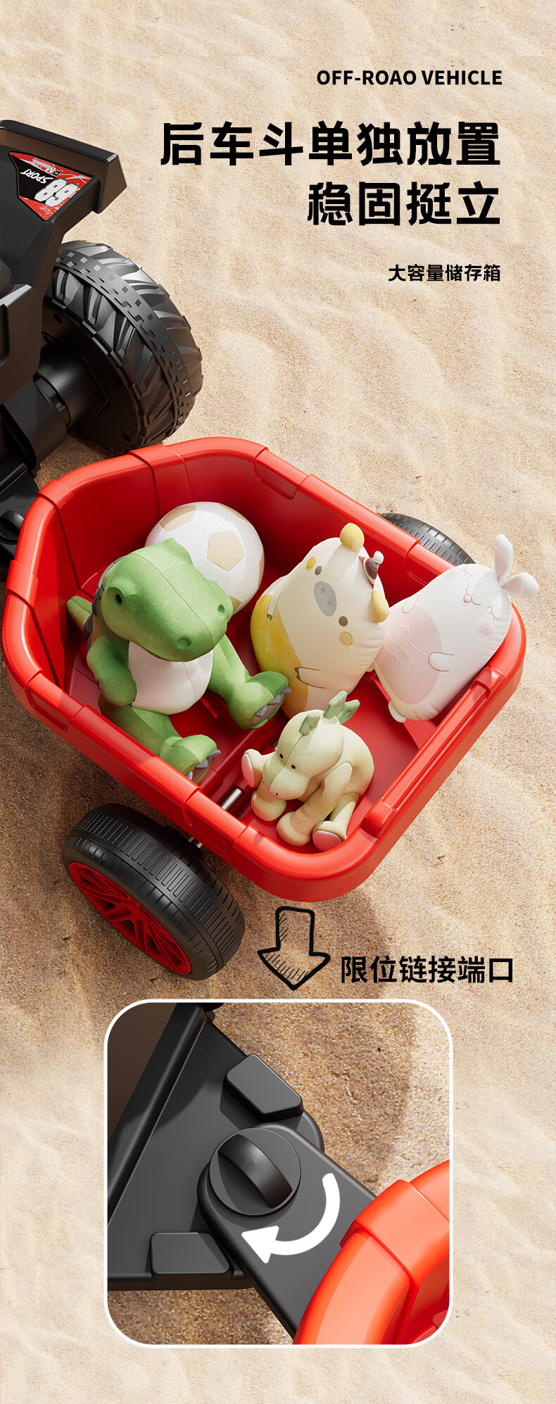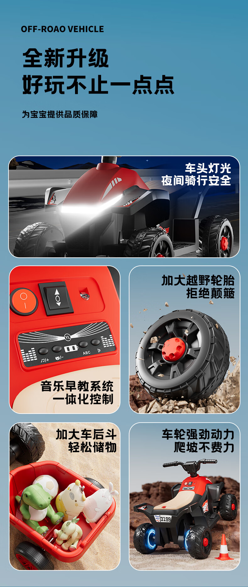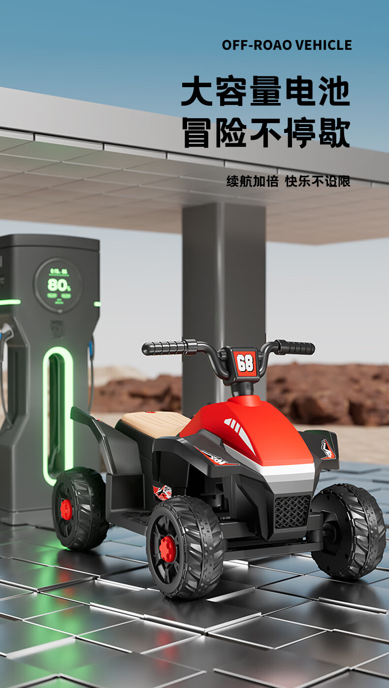 Children's electric car for men and women, charging baby remote control four-wheel off-road vehicle that can sit on children's toy car, ATV car, red dual-drive 6V7 + early education music + lighting + wear-resistant tires + large rear bucket
