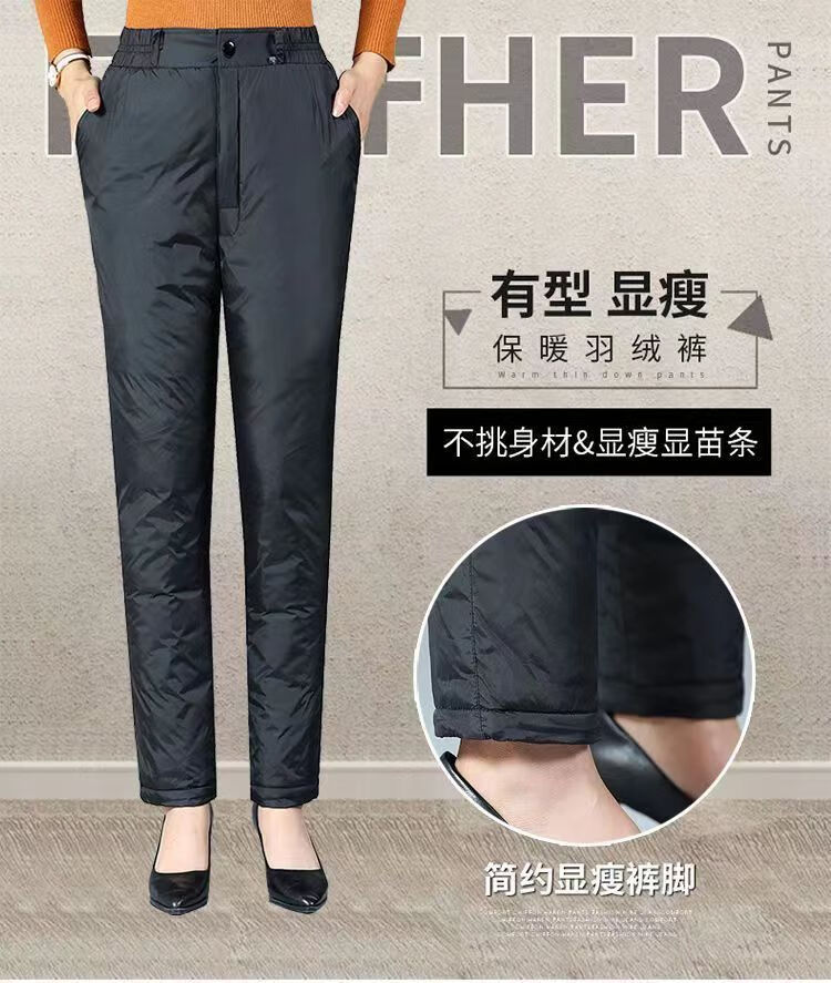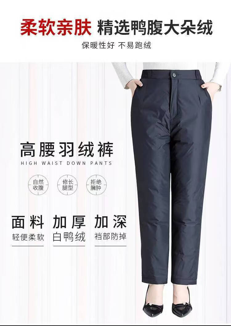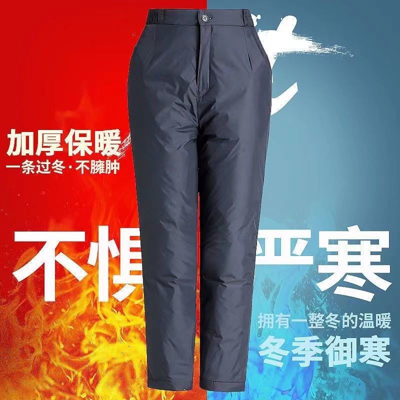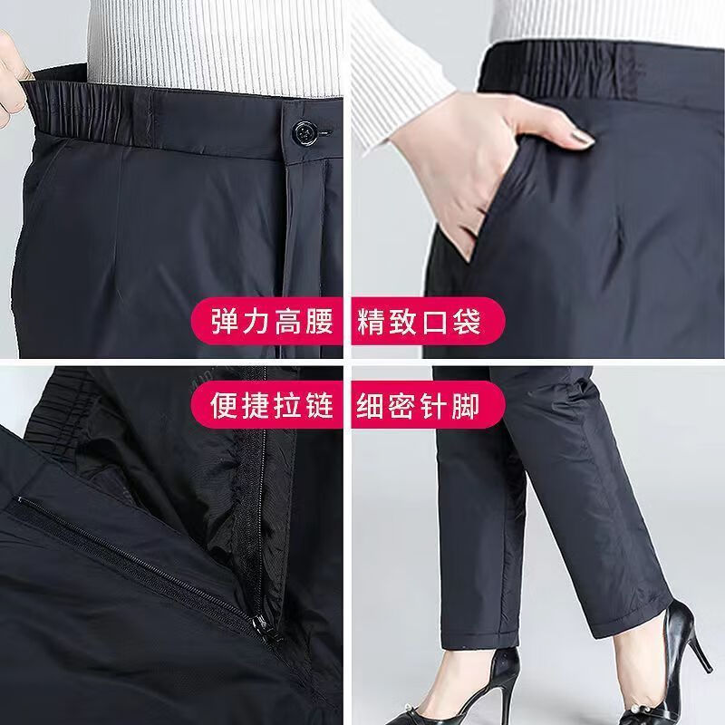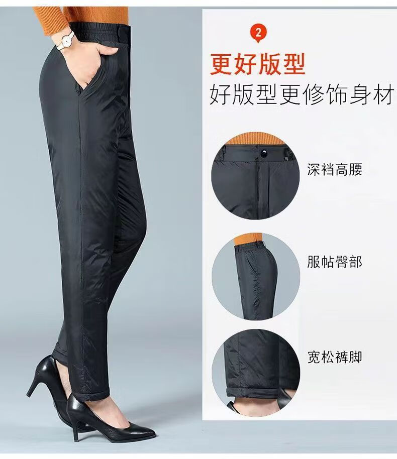 Jia'an middle-aged and elderly large size loose women's outer wear duck pants thickened warm cotton pants winter high-waisted duck pants for men and women women's black M recommended 90-105 Jin Jin equals 0.5 kg