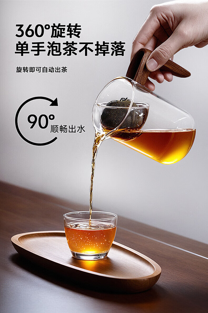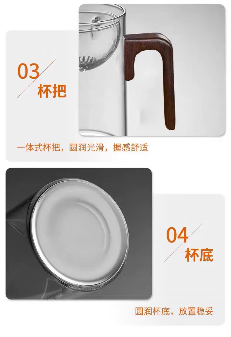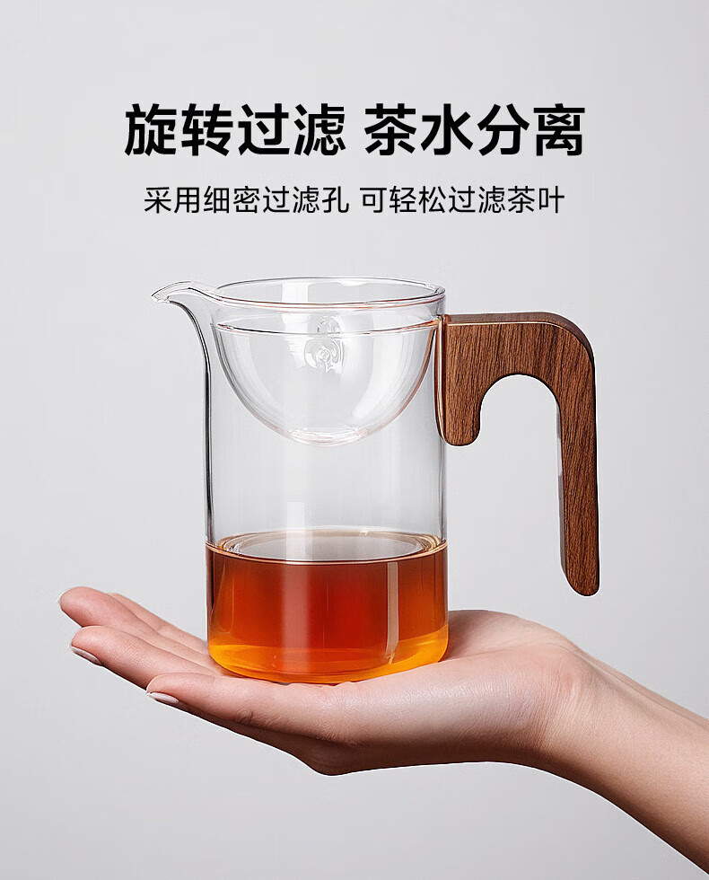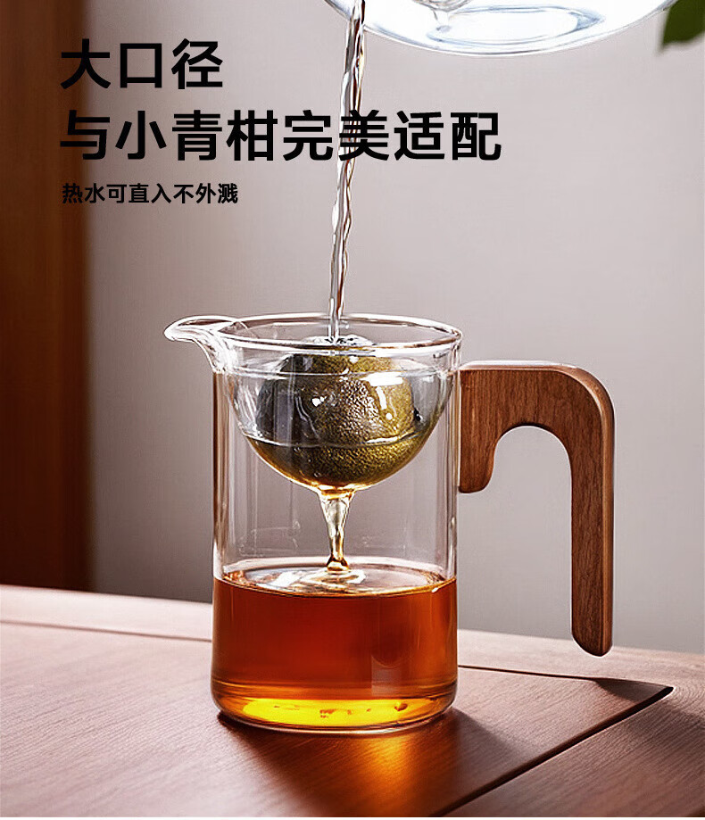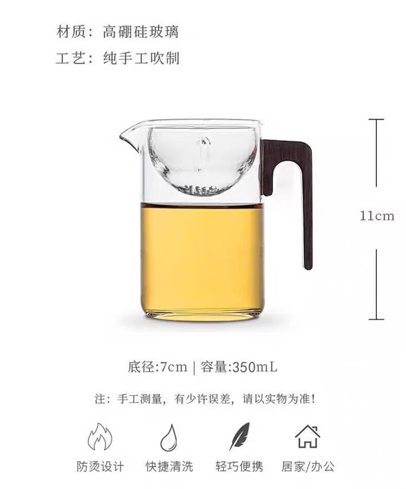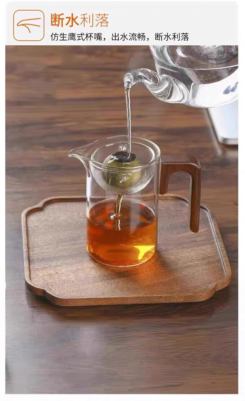 OIMG Xiaoqinggan special tea cup, reasonable shower cup, tea set, tea and water separation tea brewing set, portable large capacity, 1 pot, 6 cups, 350ml Xiaoqinggan Xiaoyao male cup, wooden handle - transparent color + 6 handle cups