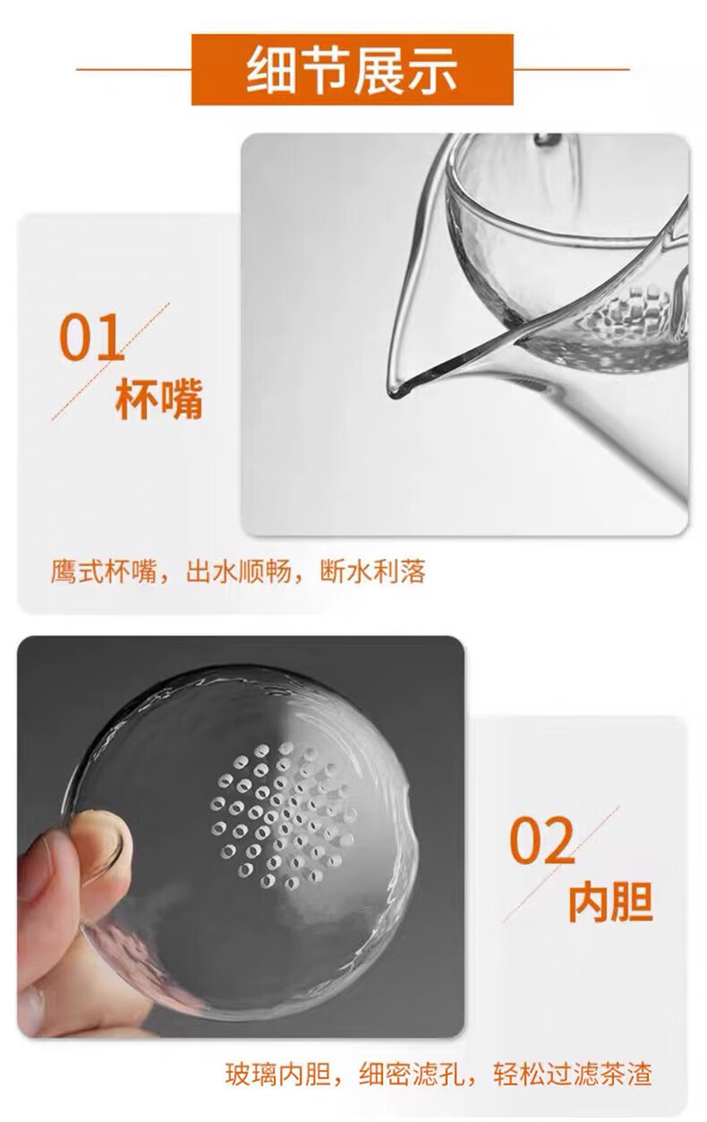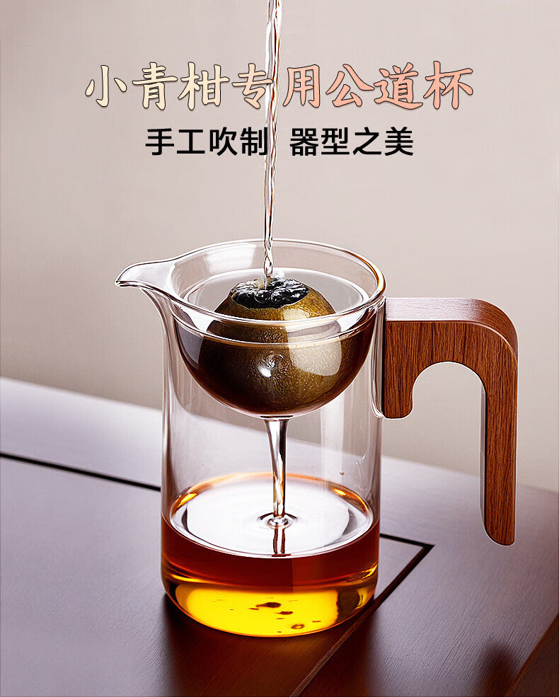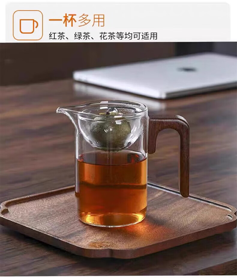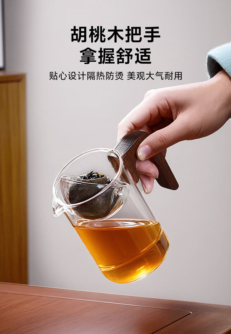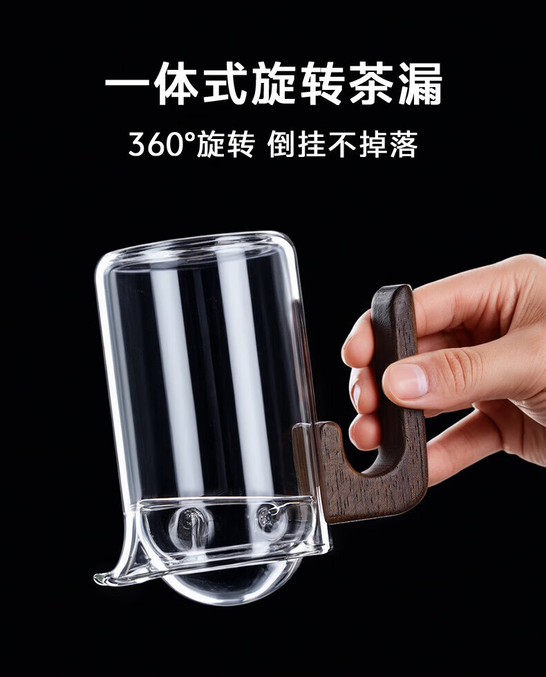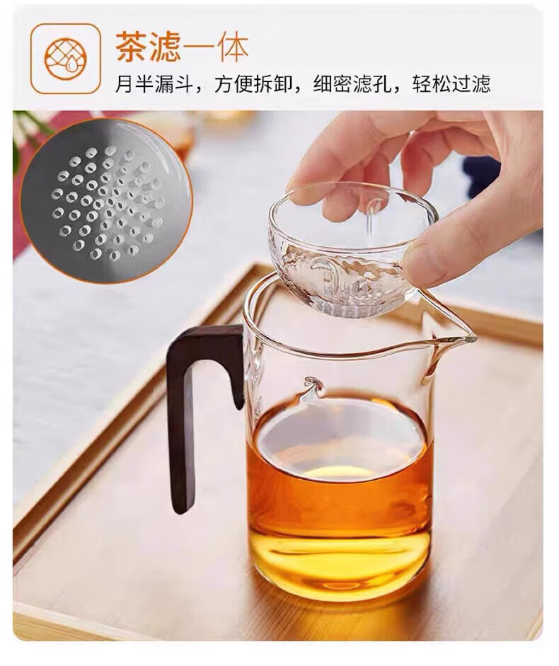 OIMG Xiaoqinggan special tea cup, reasonable shower cup, tea set, tea and water separation tea brewing set, portable large capacity, 1 pot, 6 cups, 350ml Xiaoqinggan Xiaoyao male cup, wooden handle - transparent color + 6 handle cups
