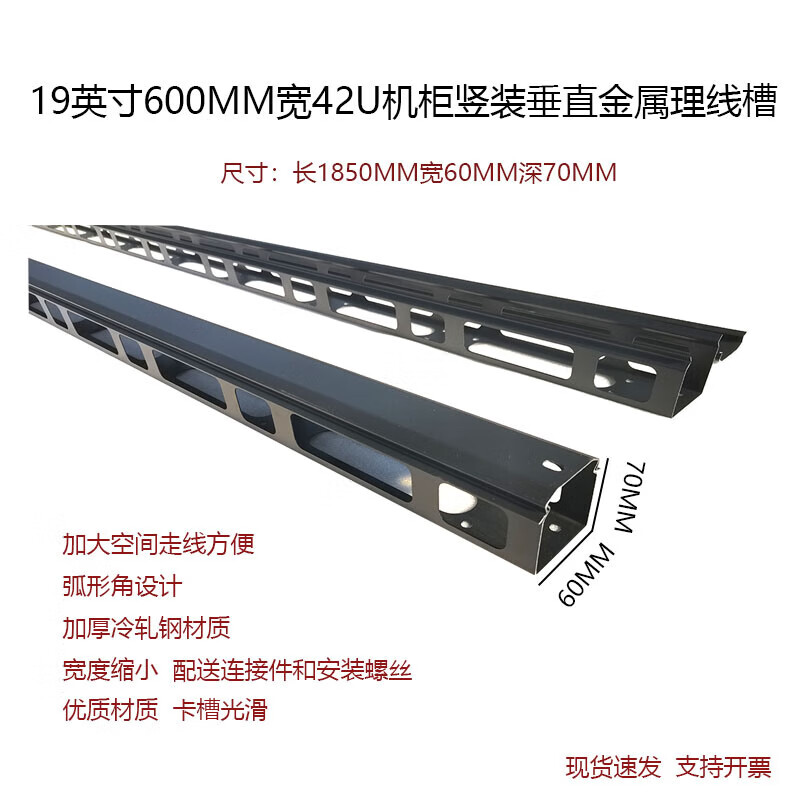 Cabinet vertical wire trough 42U cabinet wire trough metal vertical wire trough open rack 600 wide 800 wide vertical black 600 wide 42U (1850*60*70MM)