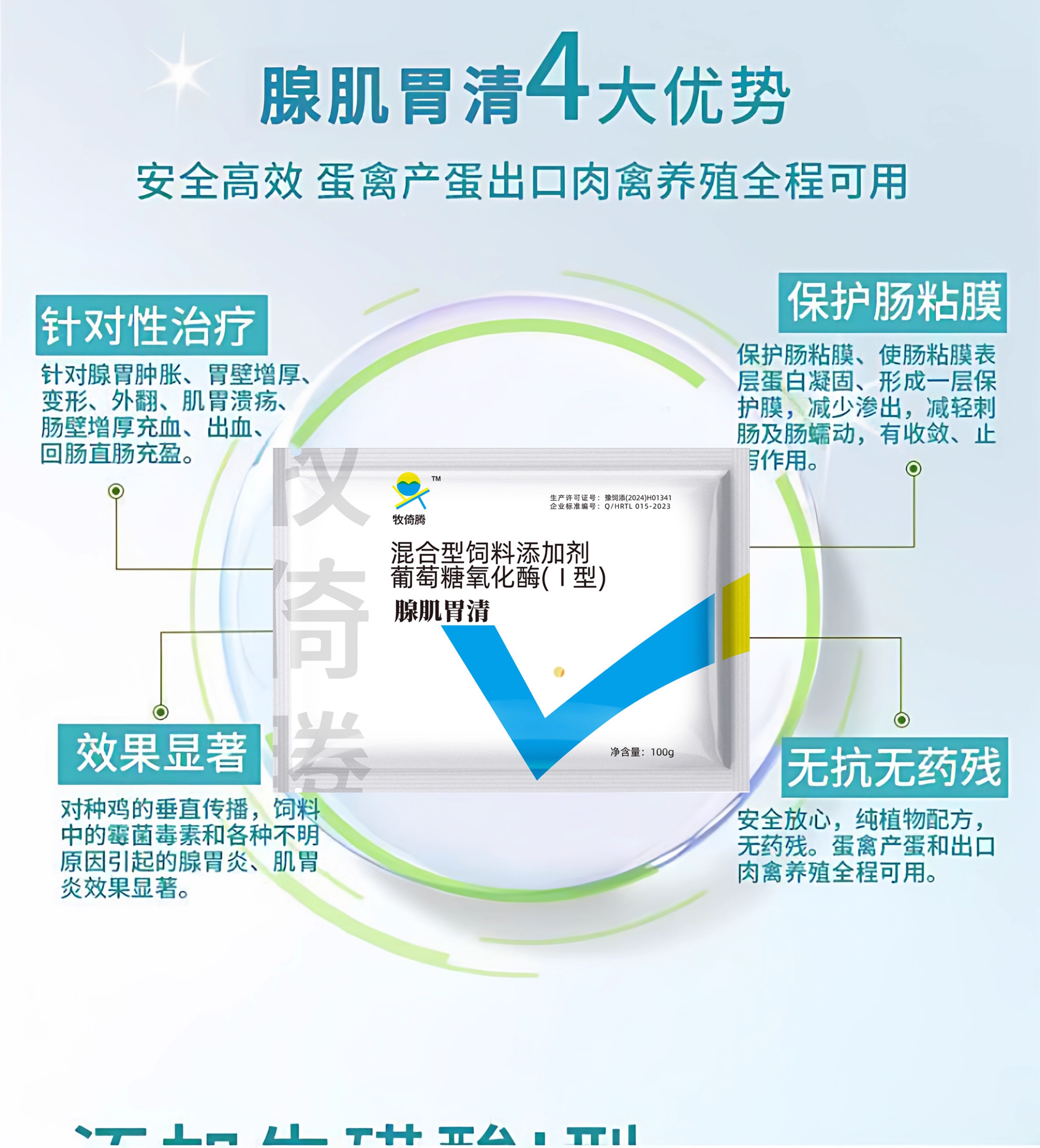 Adenomuscular stomach clearing chicken medicine for gastritis, veterinary feed additive for chickens, ducks and geese, special effect for weight loss and indigestion, 1 bag, upgraded glucose oxidase type, adenomyotic stomach clearing, chicken, duck and goose intestinal problems