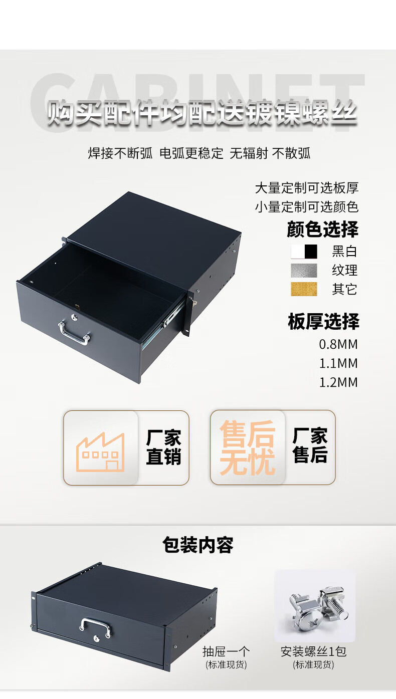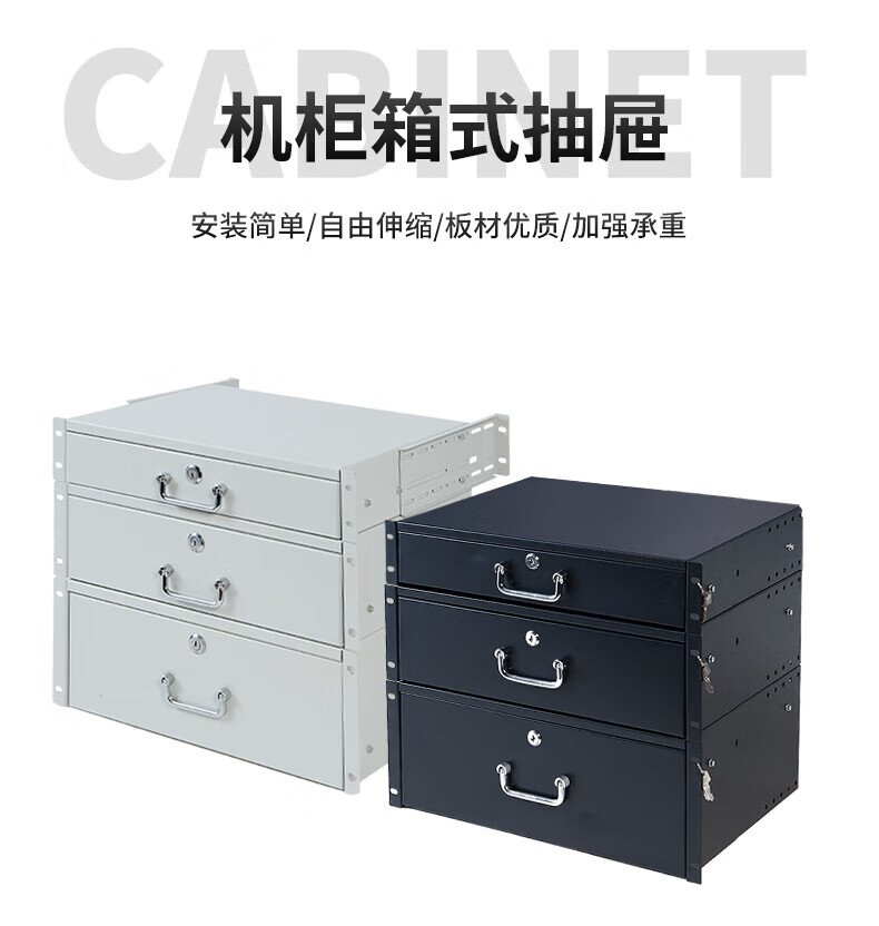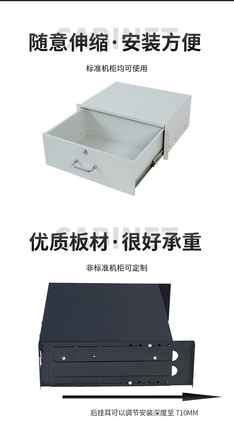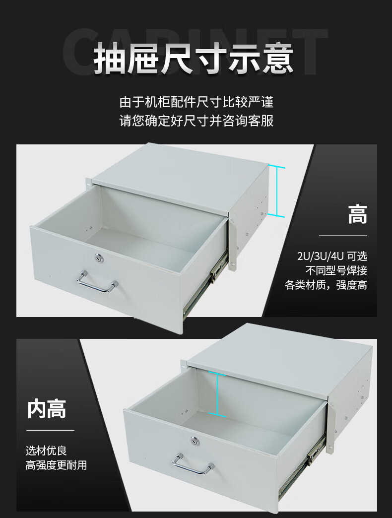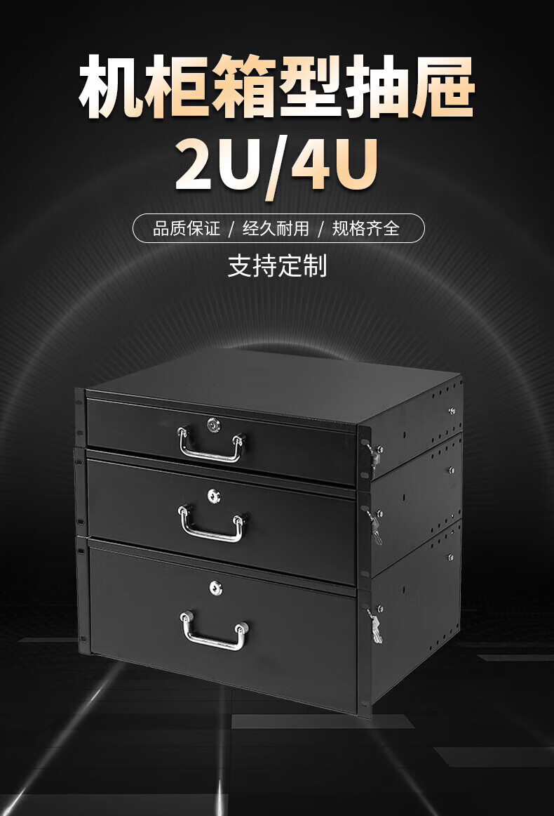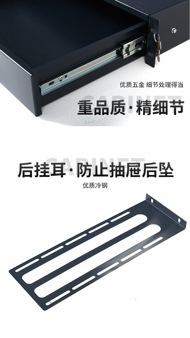 Cabinet drawer 19-inch rack drawer cabinet box flight case 2U3U4U iron drawer telescopic drawer monitor black 2U drawer (with rear hanging ears)