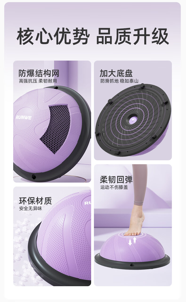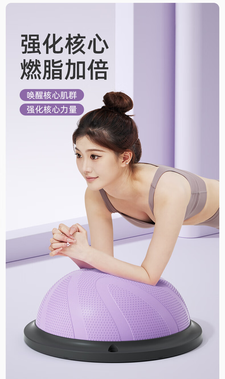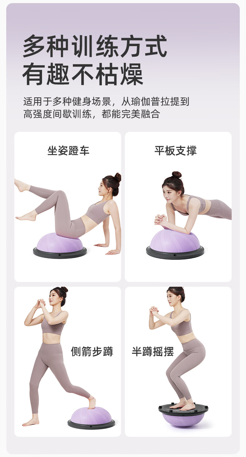 He Jiagong Poseidon Ball Semi-circular Balance Ball Core Training Yoga Special Fitness Ball Foot Pilates Fitness Equipment 46cm Medium Crescent Model / Thickened Explosion-proof / Free Tension Rope - Star