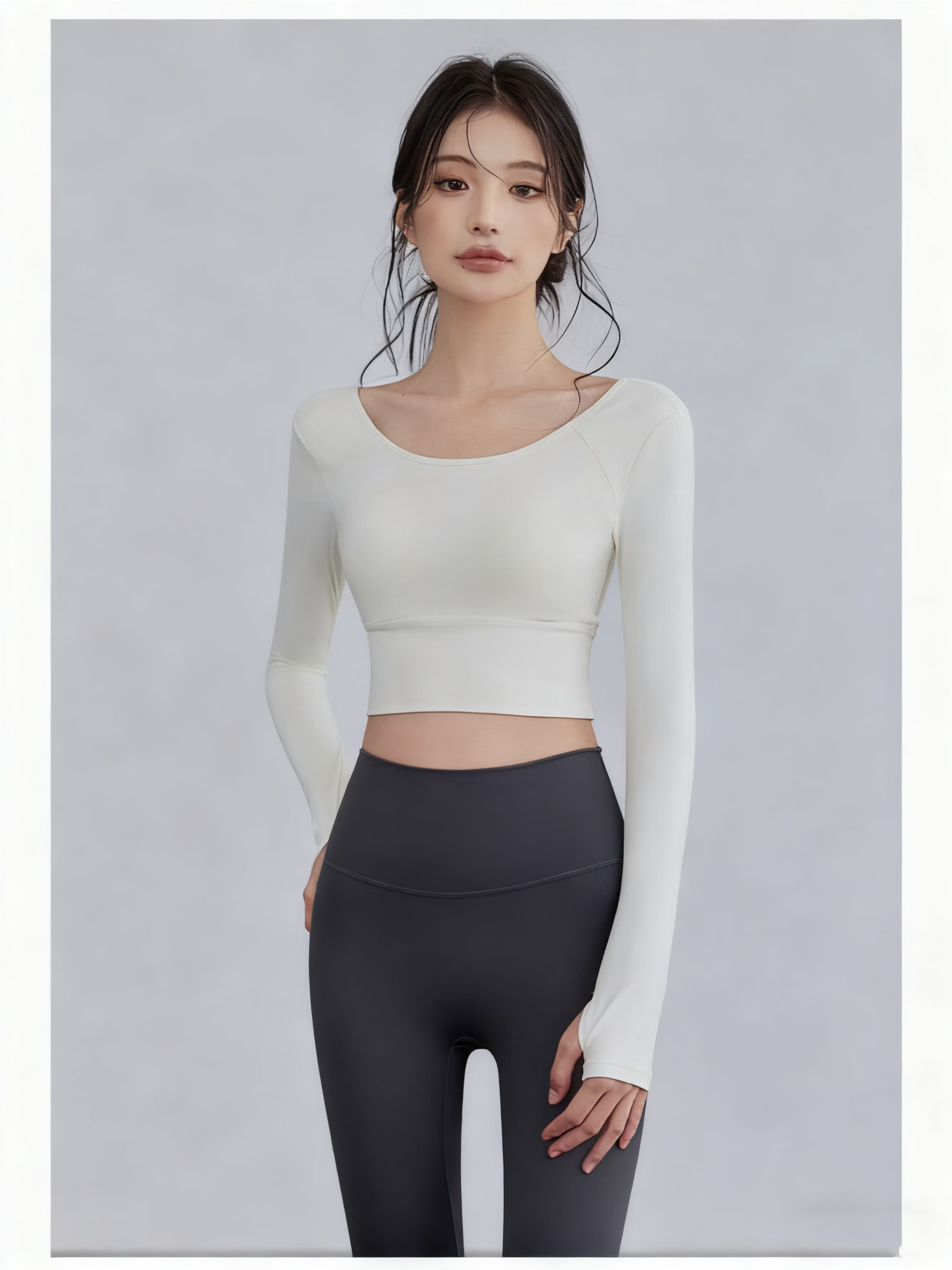 Yu Hee Hee, beautiful autumn and winter yoga clothing set, new high-end fitness, Pilates training, running, milky white top + gray pants S (100Jin Jin is equal to within 0.5kg)
