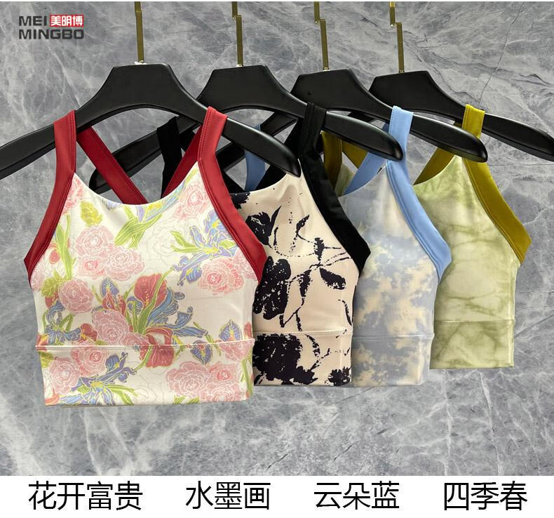 Yoga clothing suit three-piece fashionable 2024 new summer Pilates sports quick-drying fitness flower blooming wealth all-in-one cup bra S S suitable for 80-98 Jin Jin equals 0.5 kg, left and right wear