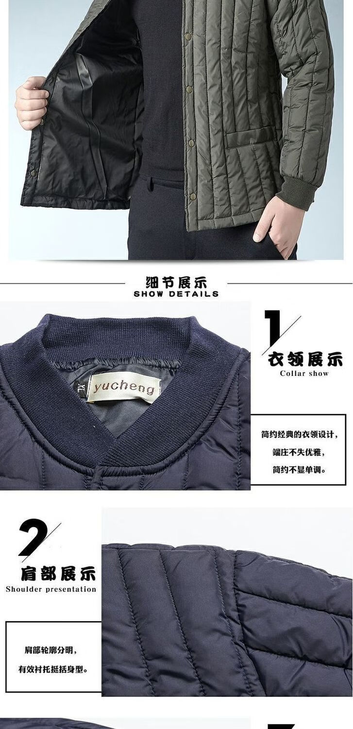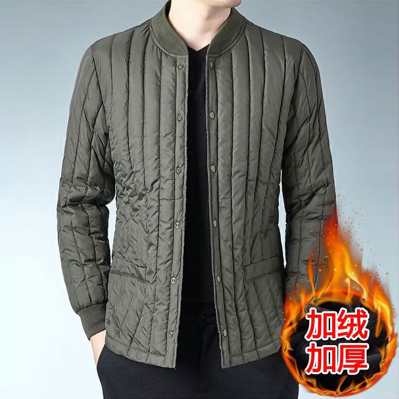 Winter middle-aged and elderly men's velvet cotton-padded school uniform artifact warm lining cotton-padded jacket daddy's inner cotton-padded jacket Army green lining natural velvet XL 95-112Jin Jin equals 0.5 kg
