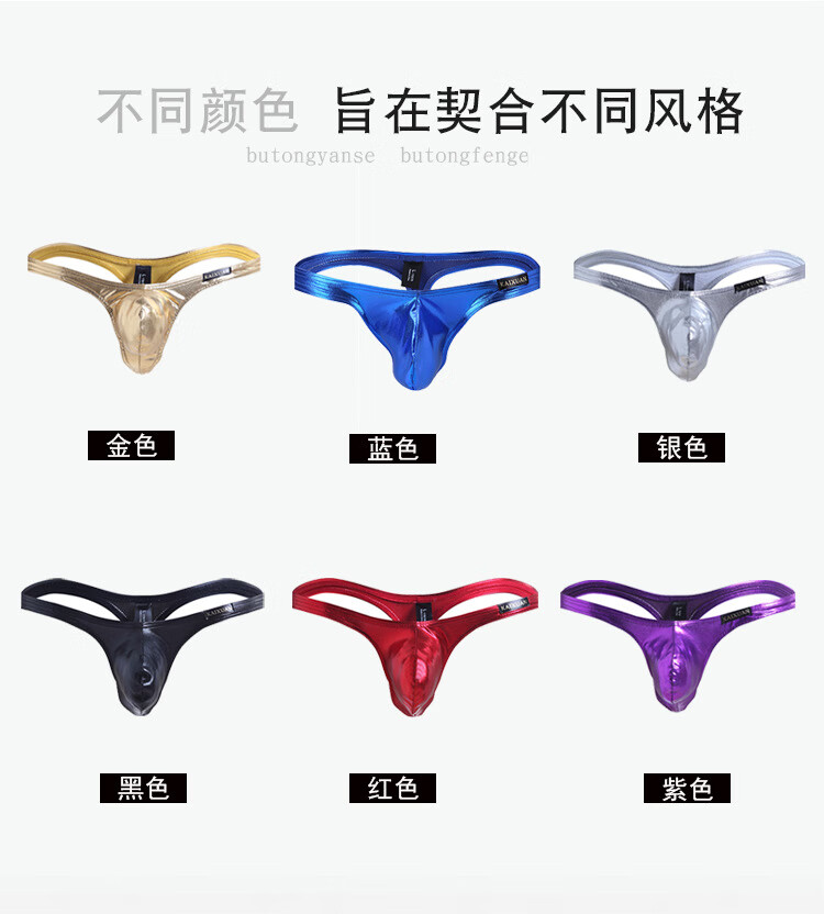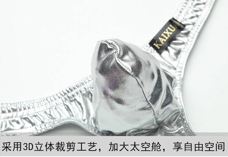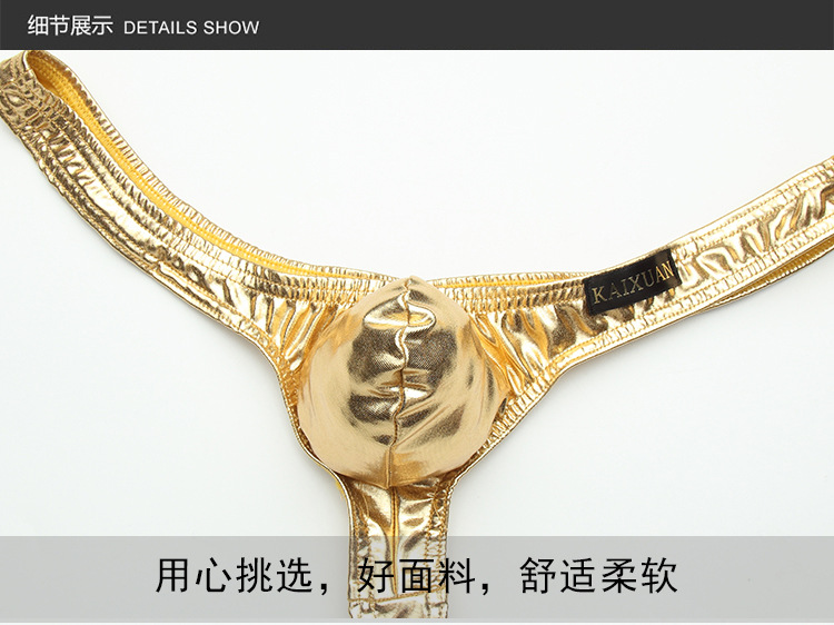 Pleasing men's underwear low-waisted sexy U-convex sexy imitation leather men's underwear low-waisted T-pants men's thong gold M