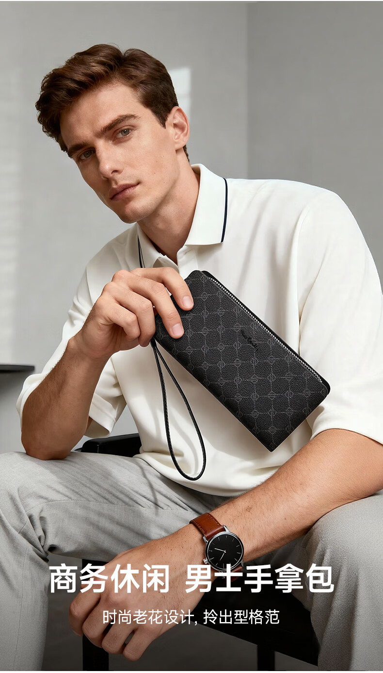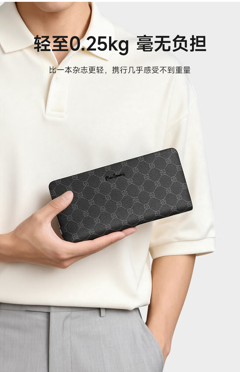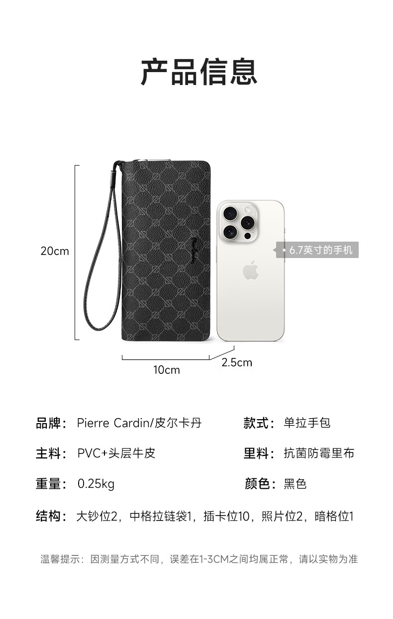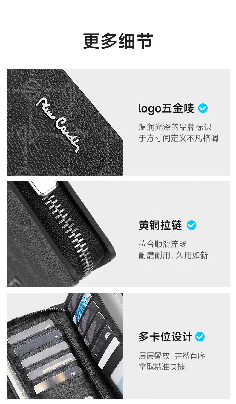 Pierre Cardin clutch bag men's long wallet genuine leather light luxury hand mobile phone bag business high-end wallet birthday gift practical PVC_first layer cowhide