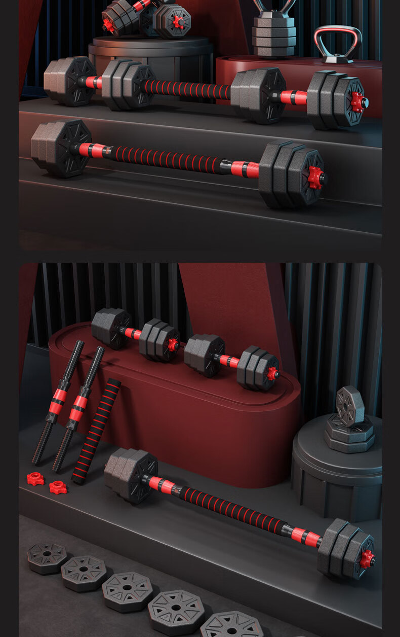 Octagonal dumbbell men's fitness set, adjustable, environmentally friendly, rubber-coated, home arm training equipment, dark night black, basic dual-purpose library, 10KG