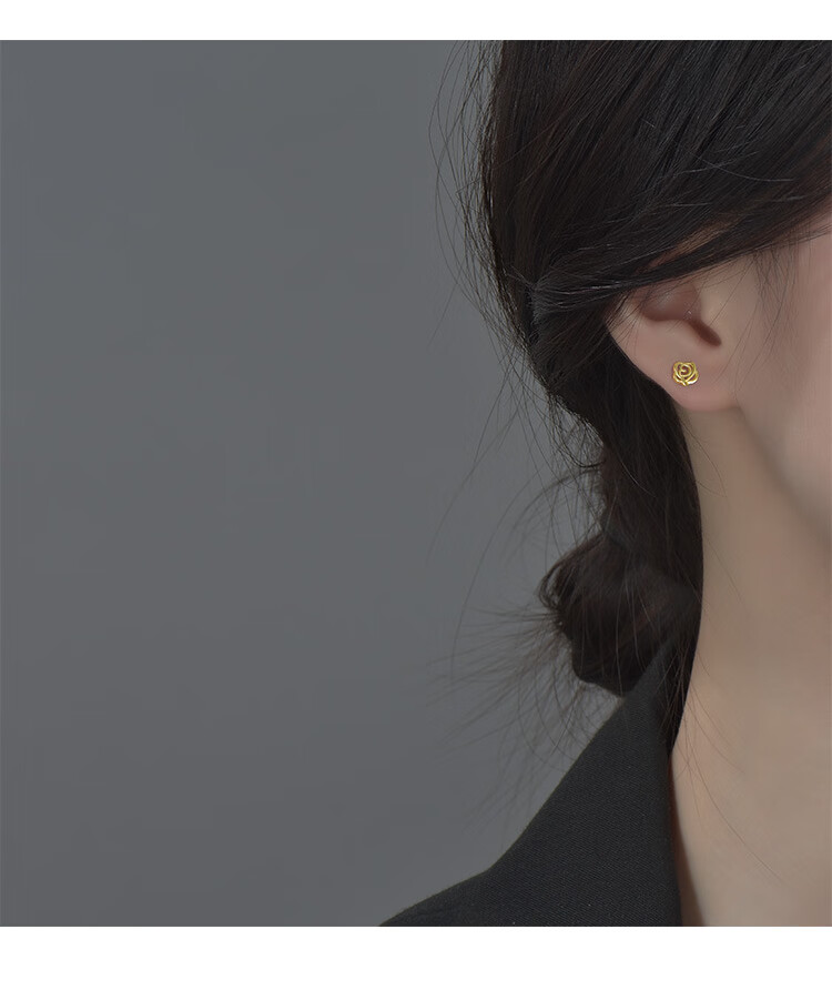Puman Zhuji 18K gold earrings for women summer rose niche design 2025 new trendy simple temperament earrings earrings a pair of small rose earrings gold