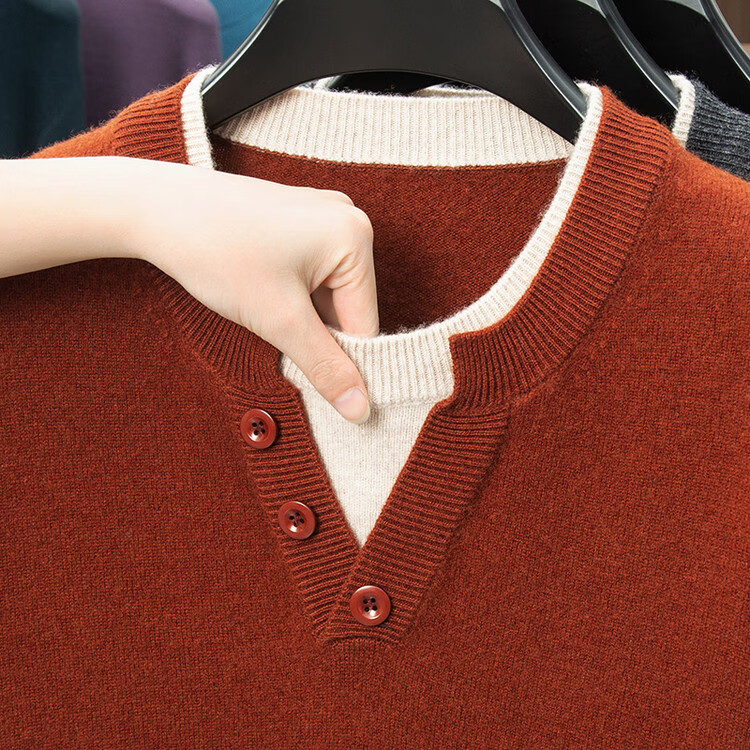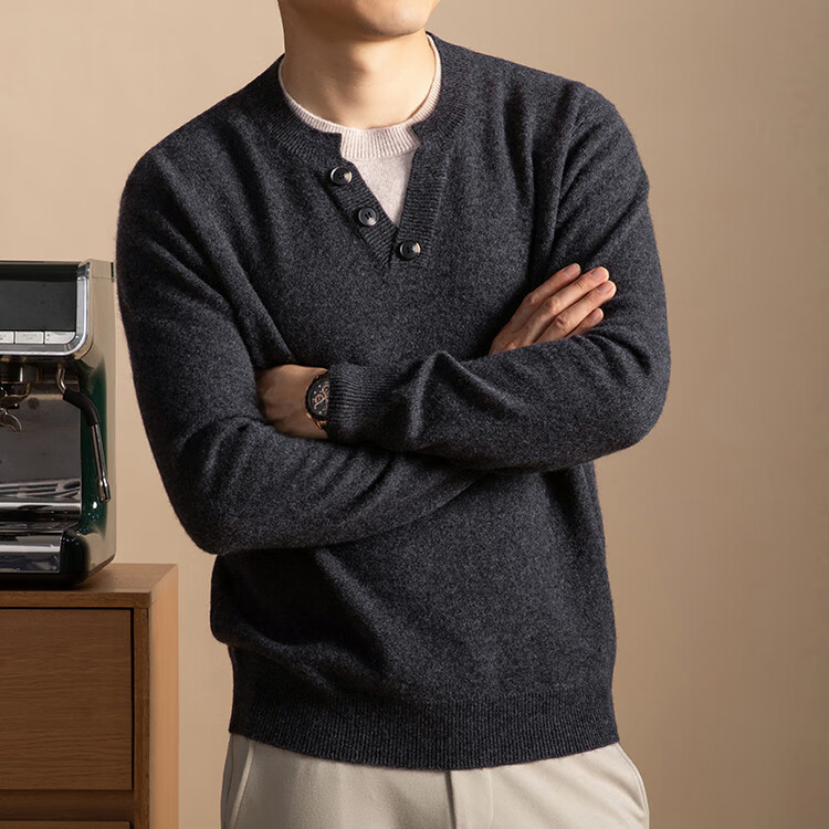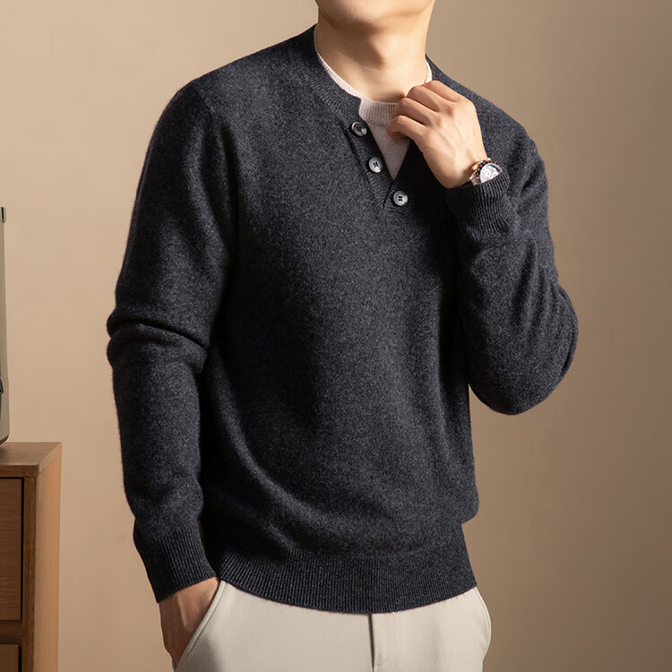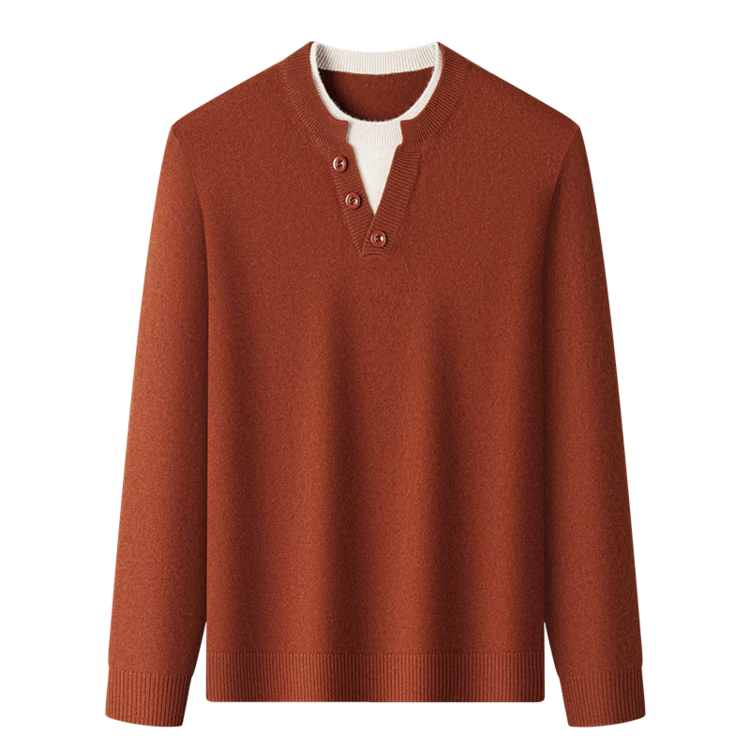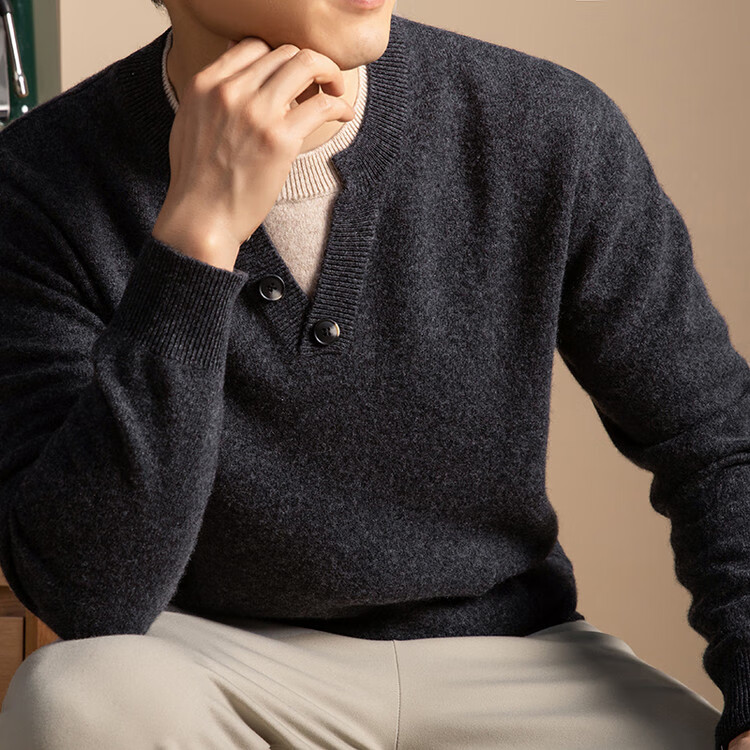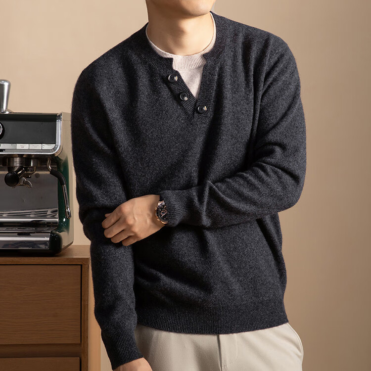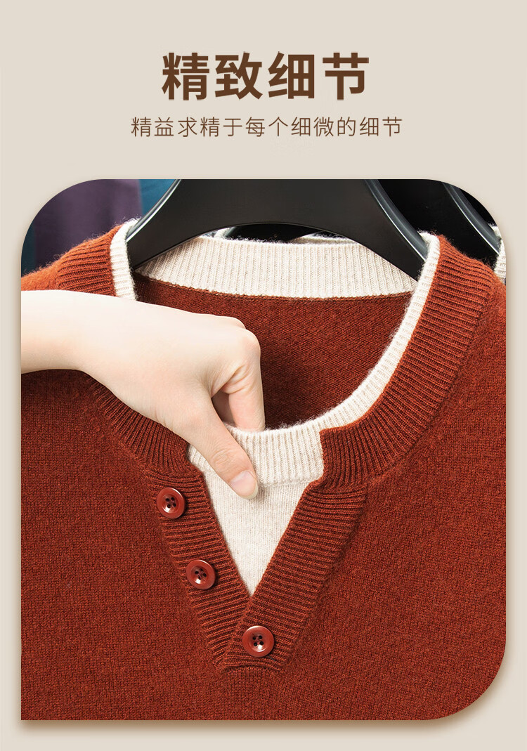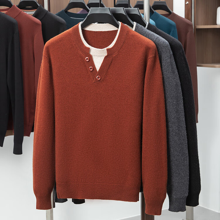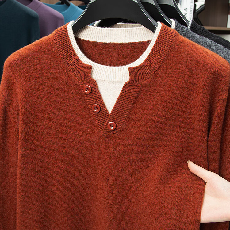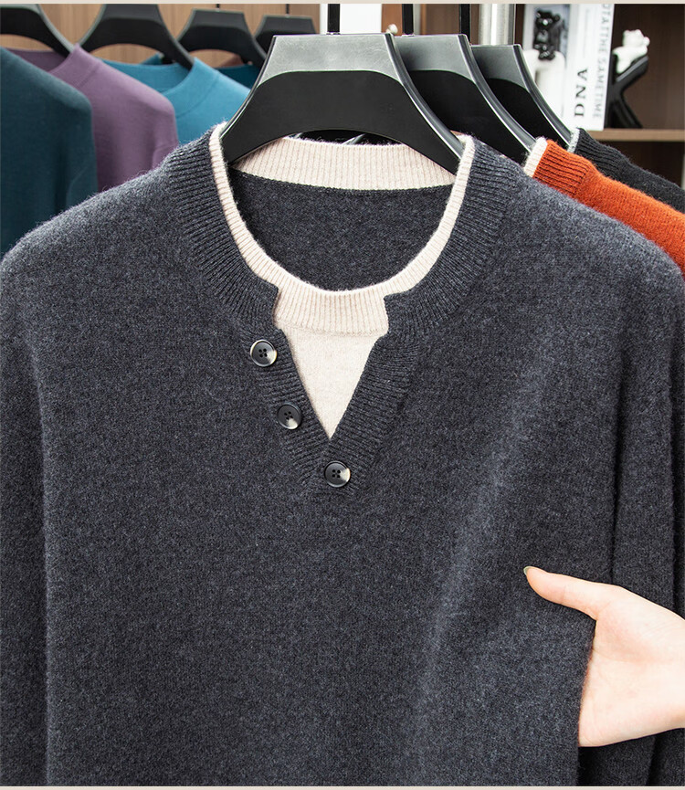 Hengyuanxiang New Cashmere Sweater Men's 2025 Autumn and Winter Light Luxury Wool Sweater Loose Fake Two-Piece Henley Collar Sweater Black M