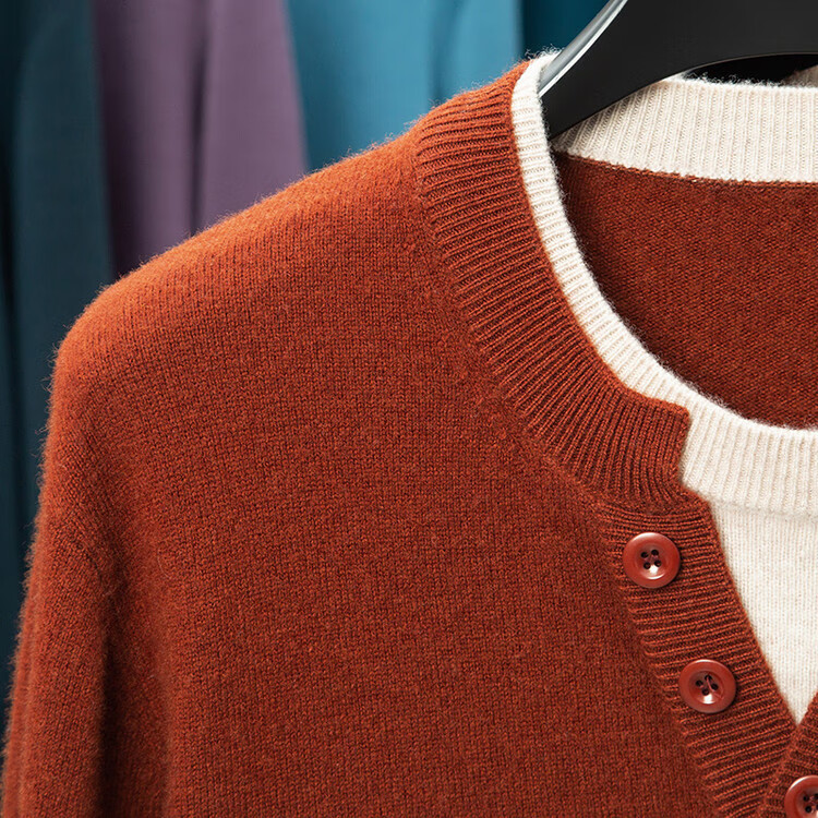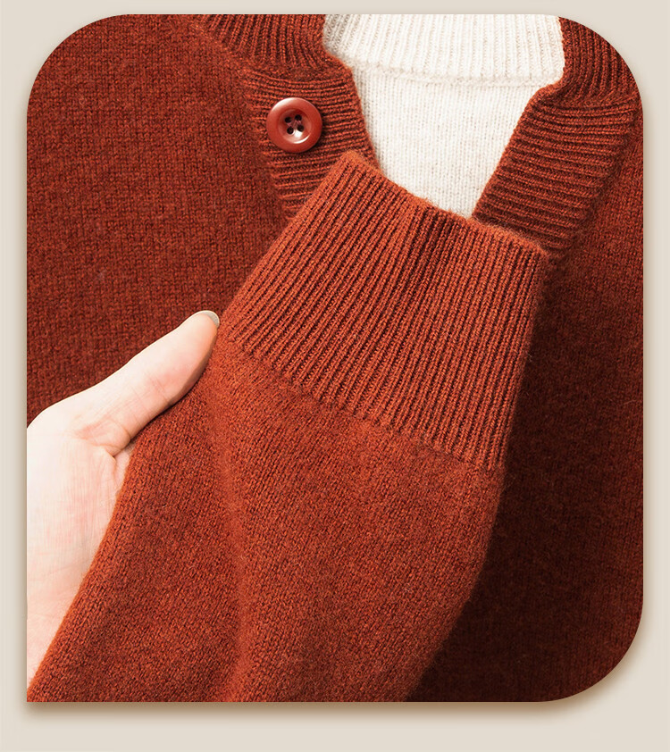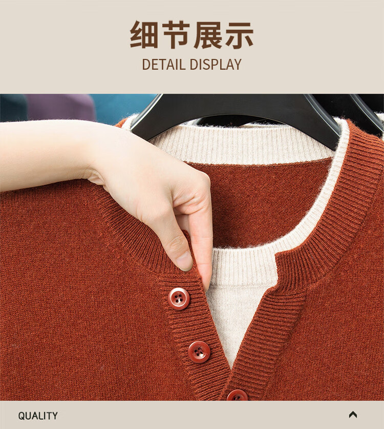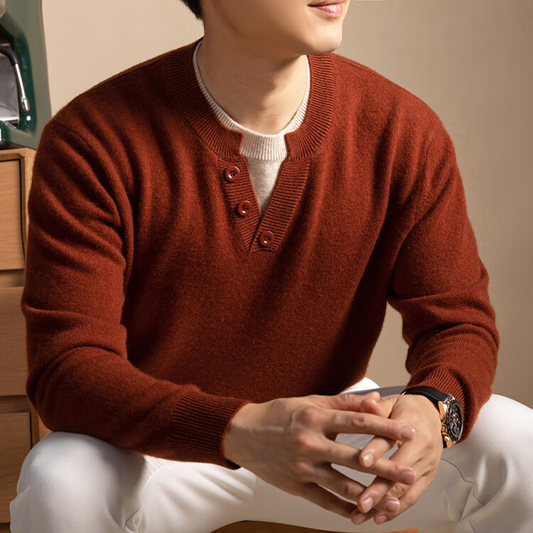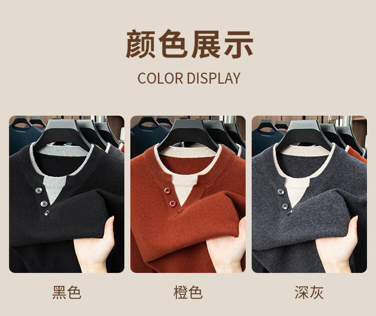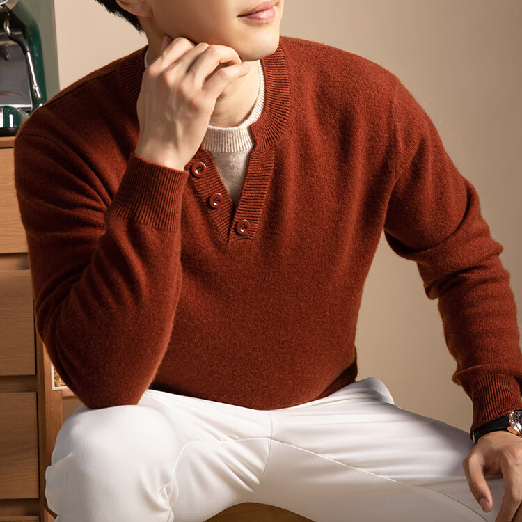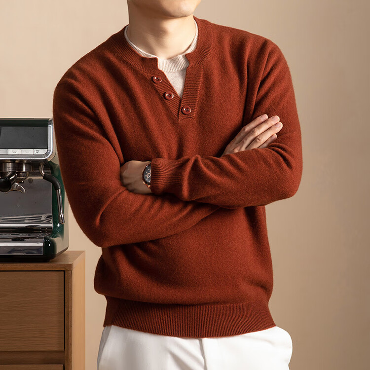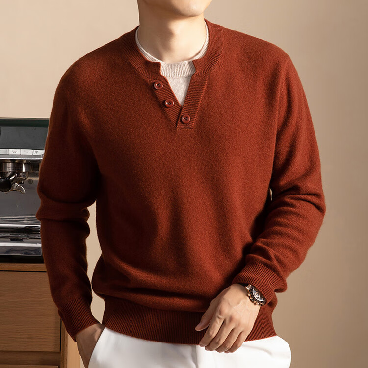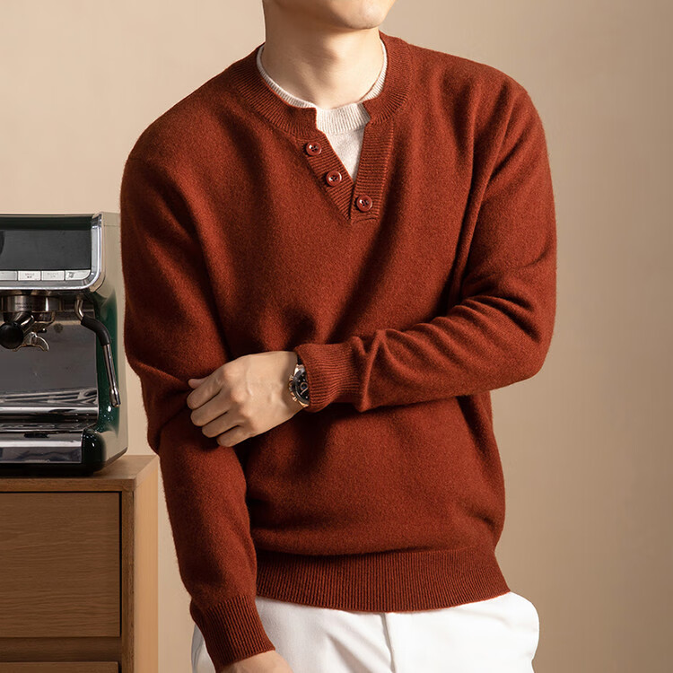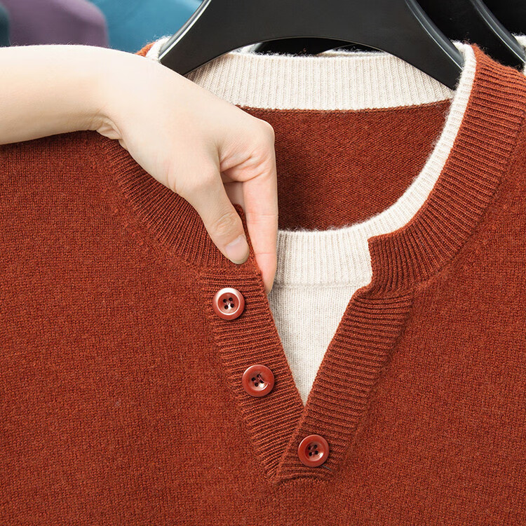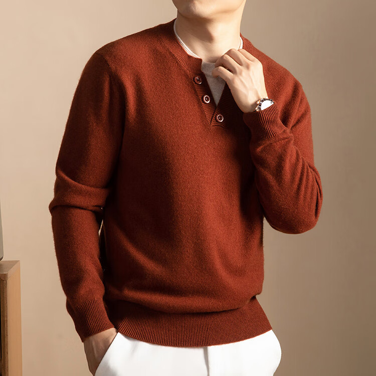 Hengyuanxiang New Cashmere Sweater Men's 2025 Autumn and Winter Light Luxury Wool Sweater Loose Fake Two-Piece Henley Collar Sweater Black M