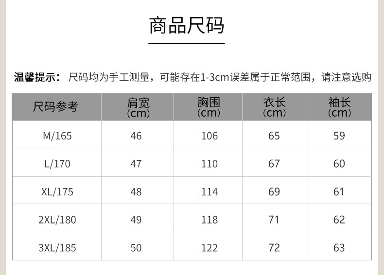 China (cm) 165 / 88-90 170 / 96-98 175 / 108-110 180 / 118-122 185 / 126-130
